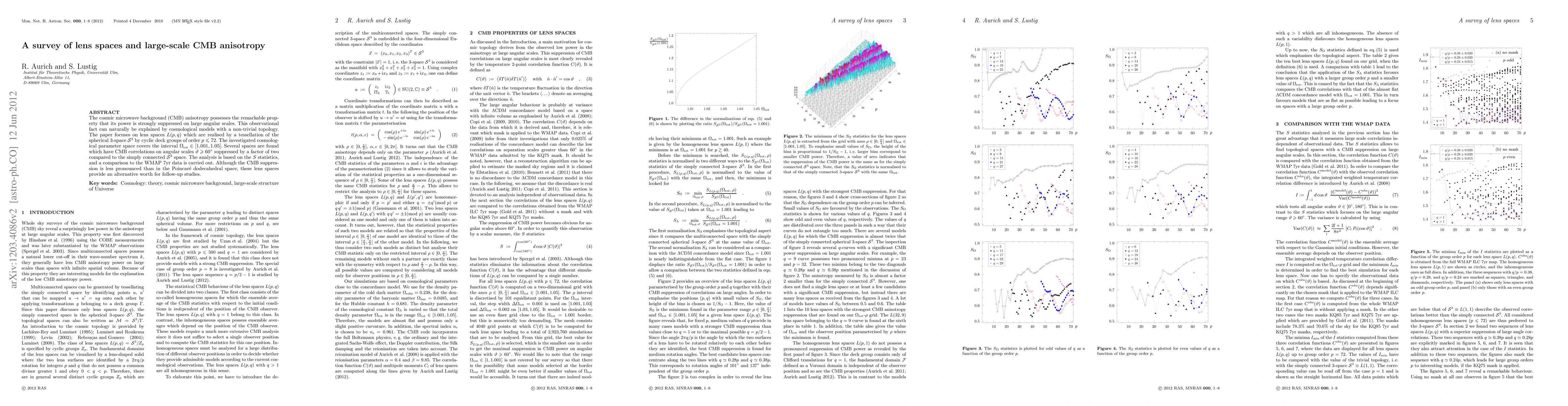 This paper explores lens spaces L(p,q) as potential explanations for the large-scale suppression of CMB anisotropy, finding that several lens spaces show CMB correlations on angular scales greater than 60° suppressed by a factor of two compared to simply connected S^3 space. The analysis uses S statistics and compares results to WMAP 7yr data, suggesting lens spaces as an alternative to the Poincare dodecahedral space for further study.