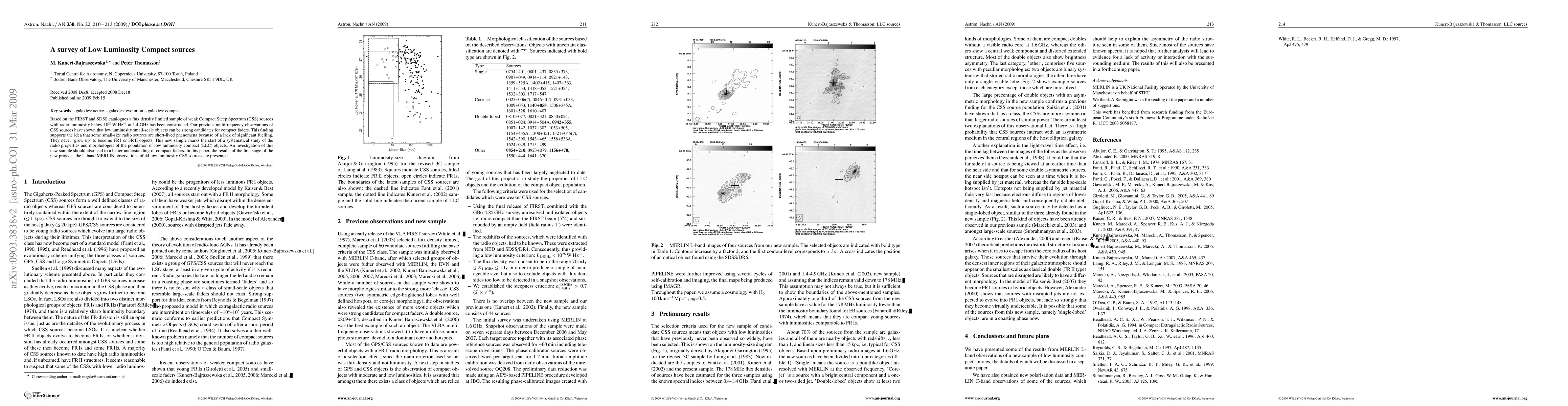 Based on the FIRST and SDSS catalogues a flux density limited sample of weak Compact Steep Spectrum (CSS) sources with radio luminosity below 10^26 [W/Hz] at 1.4 GHz has been constructed. Our previous multifrequency observations of CSS sources have shown that low luminosity small-scale objects can be strong candidates for compact faders. This finding supports the idea that some small-size radio sources are short-lived phenomena because of a lack of significant fuelling. They never 'grow up' to become FRI or FRII objects. This new sample marks the start of a systematical study of the radio properties and morphologies of the population of low luminosity compact (LLC) objects. An investigation of this new sample should also lead to a better understanding of compact faders. In this paper, the results of the first stage of the new project - the L-band MERLIN observations of 44 low luminosity CSS sources are presented.