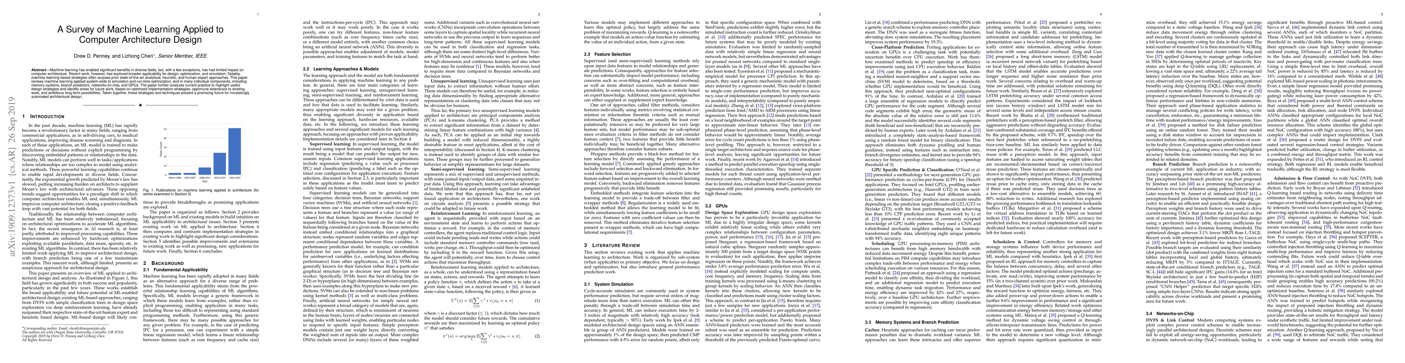 Machine learning has enabled significant benefits in diverse fields, but, with a few exceptions, has had limited impact on computer architecture. Recent work, however, has explored broader applicability for design, optimization, and simulation. Notably, machine learning based strategies often surpass prior state-of-the-art analytical, heuristic, and human-expert approaches. This paper reviews machine learning applied system-wide to simulation and run-time optimization, and in many individual components, including memory systems, branch predictors, networks-on-chip, and GPUs. The paper further analyzes current practice to highlight useful design strategies and identify areas for future work, based on optimized implementation strategies, opportune extensions to existing work, and ambitious long term possibilities. Taken together, these strategies and techniques present a promising future for increasingly automated architectural design.
