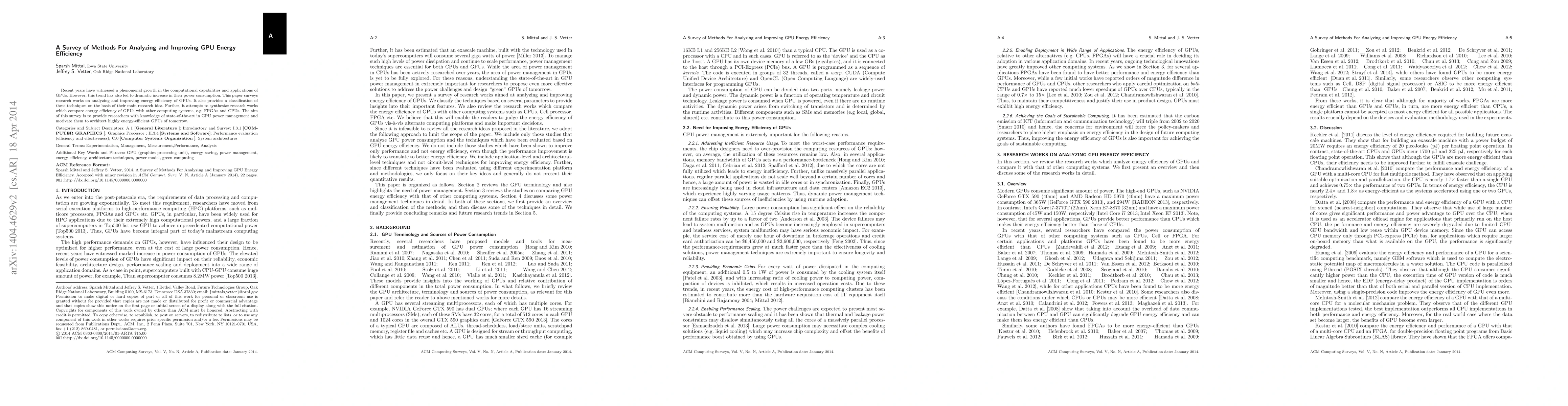 Recent years have witnessed a phenomenal growth in the computational capabilities and applications of GPUs. However, this trend has also led to dramatic increase in their power consumption. This paper surveys research works on analyzing and improving energy efficiency of GPUs. It also provides a classification of these techniques on the basis of their main research idea. Further, it attempts to synthesize research works which compare energy efficiency of GPUs with other computing systems, e.g. FPGAs and CPUs. The aim of this survey is to provide researchers with knowledge of state-of-the-art in GPU power management and motivate them to architect highly energy-efficient GPUs of tomorrow.