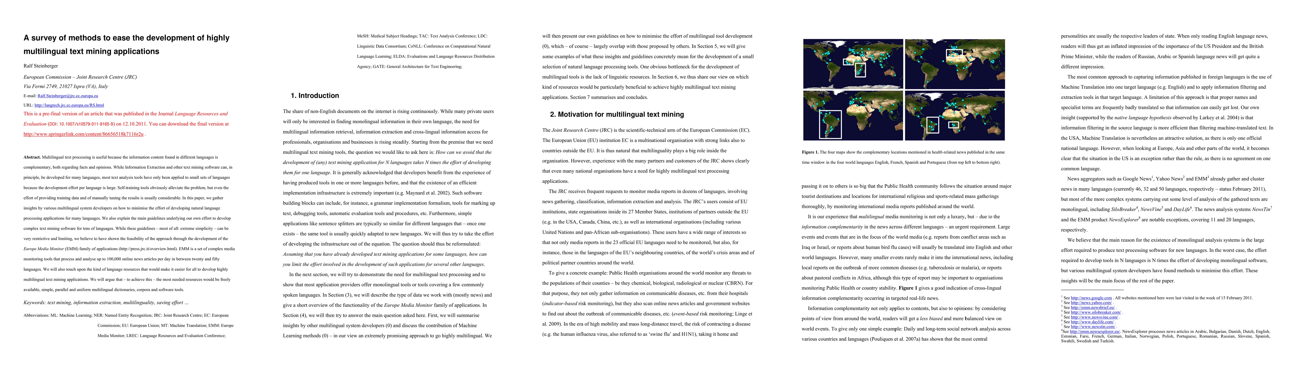 This paper gathers insights from multilingual system developers to minimize development effort for NLP applications across many languages. The key guidelines include simplicity, and the authors demonstrate feasibility through the Europe Media Monitor (EMM) system, processing articles in 20-50 languages. They advocate for freely available, simple, parallel, and uniform language resources to ease multilingual text mining application development.