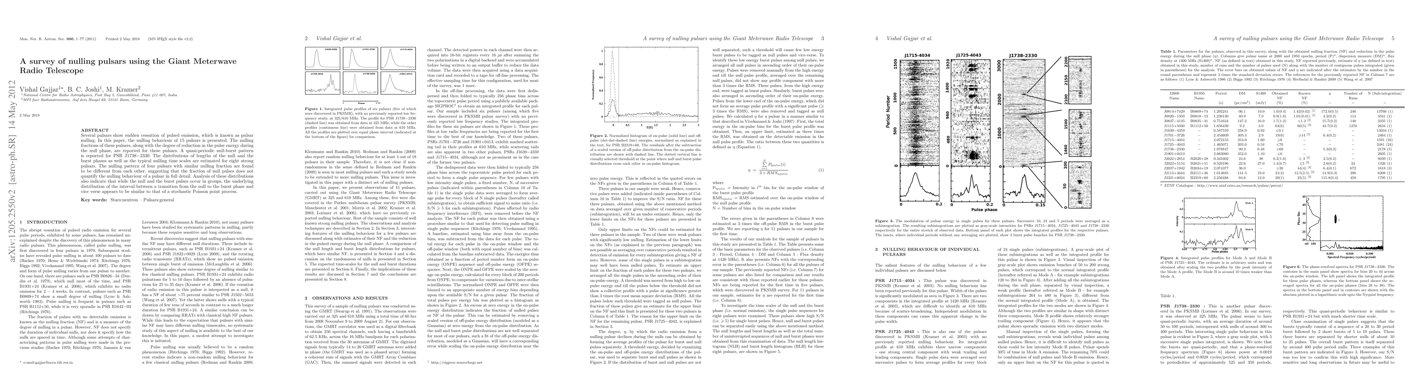 This paper examines the nulling behavior of 15 pulsars using the GMRT, finding varied nulling patterns despite similar nulling fractions. A quasi-periodic null-burst pattern is noted for PSR J1738-2330, and distributions of null/burst phase lengths suggest null and burst pulses occur in groups with Poisson-like interval transitions.