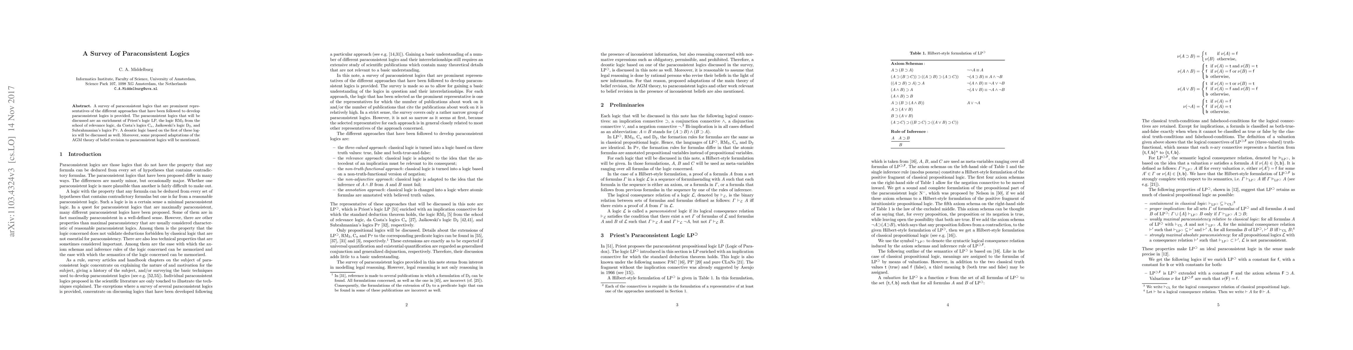 This paper surveys prominent paraconsistent logics, including variations of Priest's LP, RM3 from relevance logic, da Costa's Cn series, Jaskowski's D2, and Subrahmanian's Ptau. It also discusses a deontic logic derived from these foundations and mentions adaptations of belief revision theories within a paraconsistent framework.