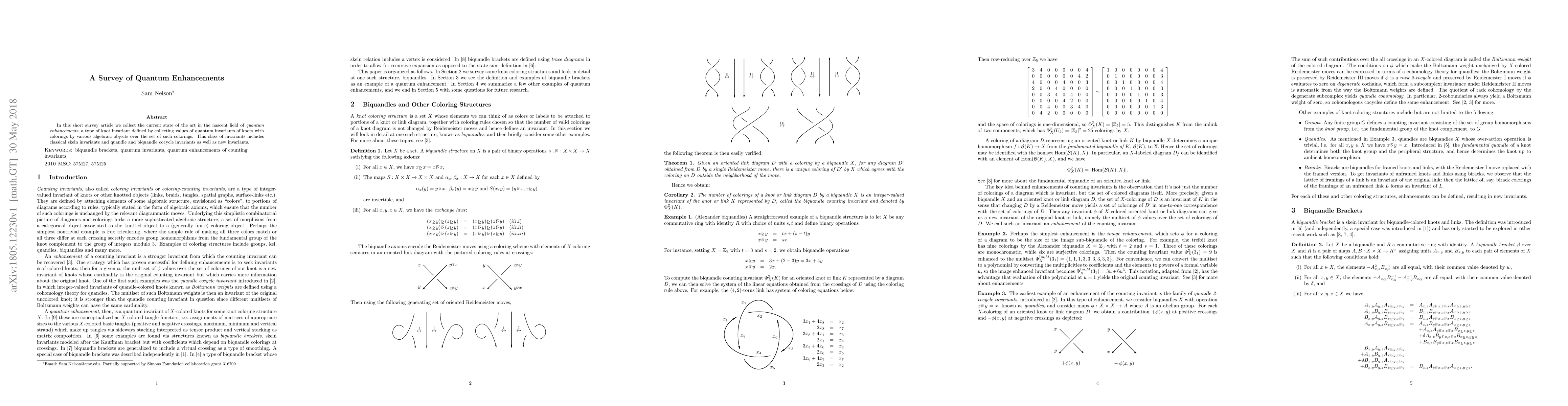 In this short survey article we collect the current state of the art in the nascent field of \textit{quantum enhancements}, a type of knot invariant defined by collecting values of quantum invariants of knots with colorings by various algebraic objects over the set of such colorings. This class of invariants includes classical skein invariants and quandle and biquandle cocycle invariants as well as new invariants.