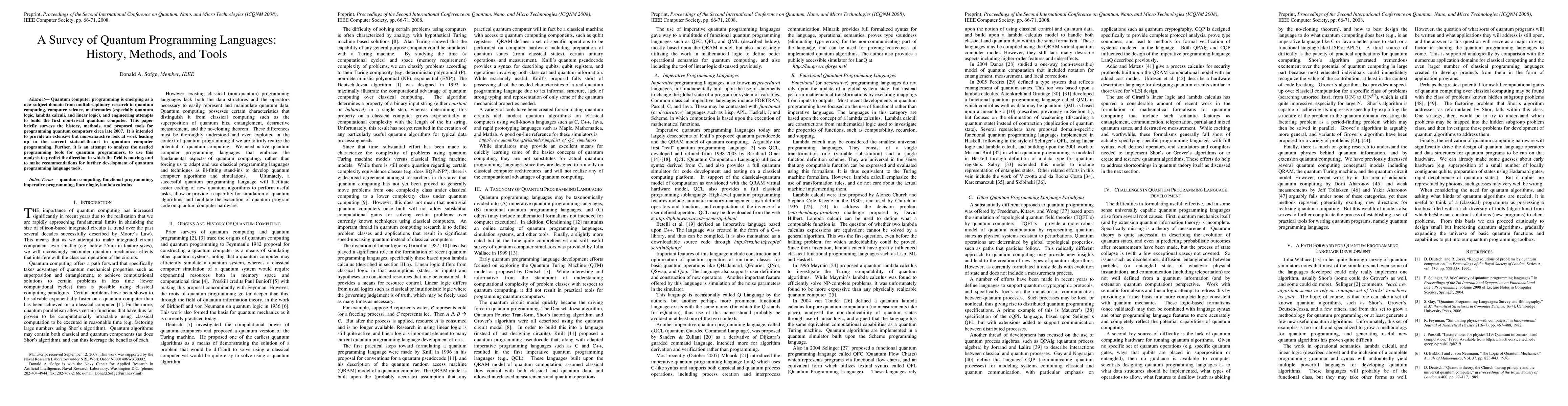 Quantum computer programming is emerging as a new subject domain from multidisciplinary research in quantum computing, computer science, mathematics (especially quantum logic, lambda calculi, and linear logic), and engineering attempts to build the first non-trivial quantum computer. This paper briefly surveys the history, methods, and proposed tools for programming quantum computers circa late 2007. It is intended to provide an extensive but non-exhaustive look at work leading up to the current state-of-the-art in quantum computer programming. Further, it is an attempt to analyze the needed programming tools for quantum programmers, to use this analysis to predict the direction in which the field is moving, and to make recommendations for further development of quantum programming language tools.