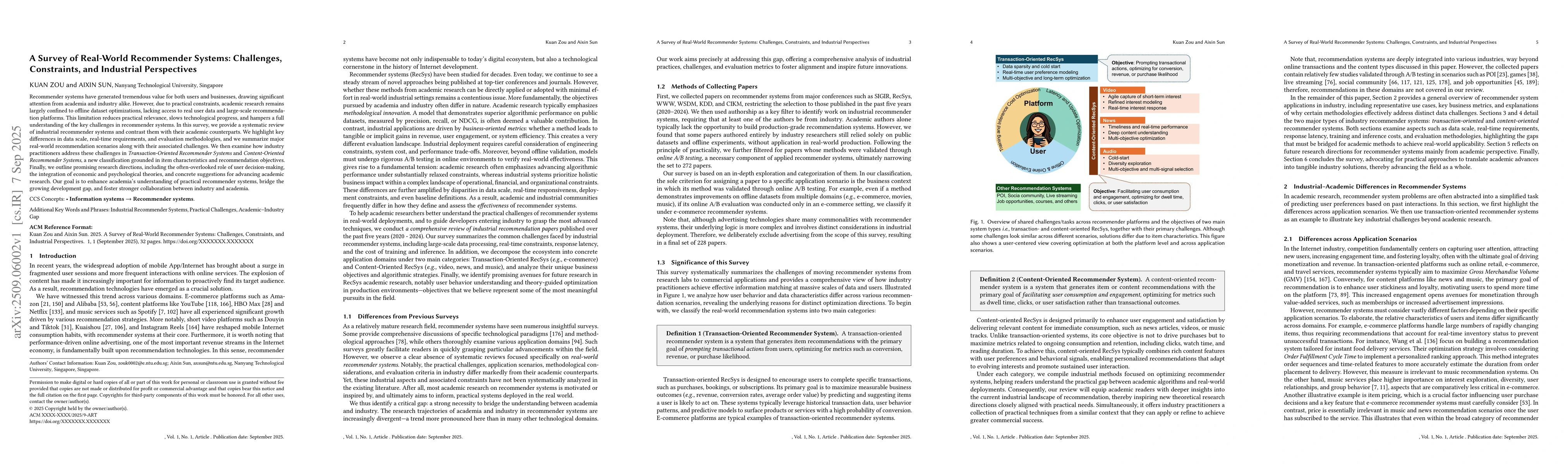Recommender systems have generated tremendous value for both users and businesses, drawing significant attention from academia and industry alike. However, due to practical constraints, academic research remains largely confined to offline dataset optimizations, lacking access to real user data and large-scale recommendation platforms. This limitation reduces practical relevance, slows technological progress, and hampers a full understanding of the key challenges in recommender systems. In this survey, we provide a systematic review of industrial recommender systems and contrast them with their academic counterparts. We highlight key differences in data scale, real-time requirements, and evaluation methodologies, and we summarize major real-world recommendation scenarios along with their associated challenges. We then examine how industry practitioners address these challenges in Transaction-Oriented Recommender Systems and Content-Oriented Recommender Systems, a new classification grounded in item characteristics and recommendation objectives. Finally, we outline promising research directions, including the often-overlooked role of user decision-making, the integration of economic and psychological theories, and concrete suggestions for advancing academic research. Our goal is to enhance academia's understanding of practical recommender systems, bridge the growing development gap, and foster stronger collaboration between industry and academia.