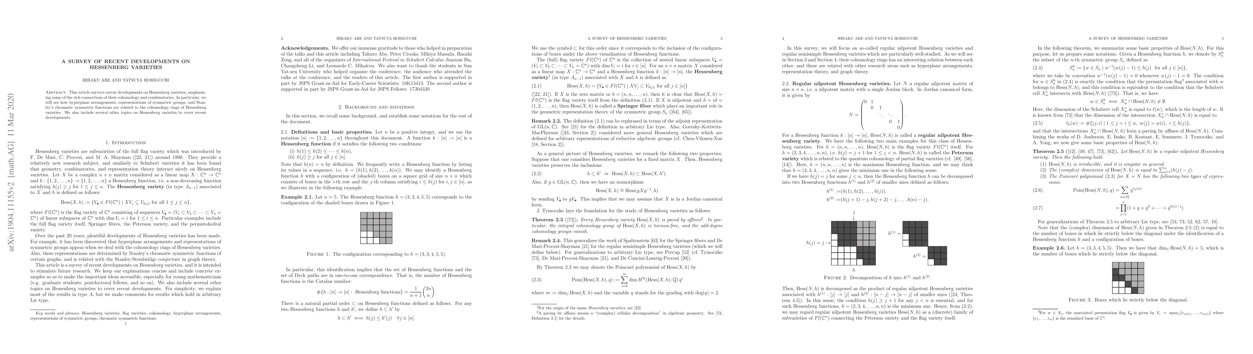 This paper surveys recent advancements in Hessenberg varieties, highlighting their connections to hyperplane arrangements, symmetric group representations, and Stanley's chromatic symmetric functions, alongside other emerging topics in the field.