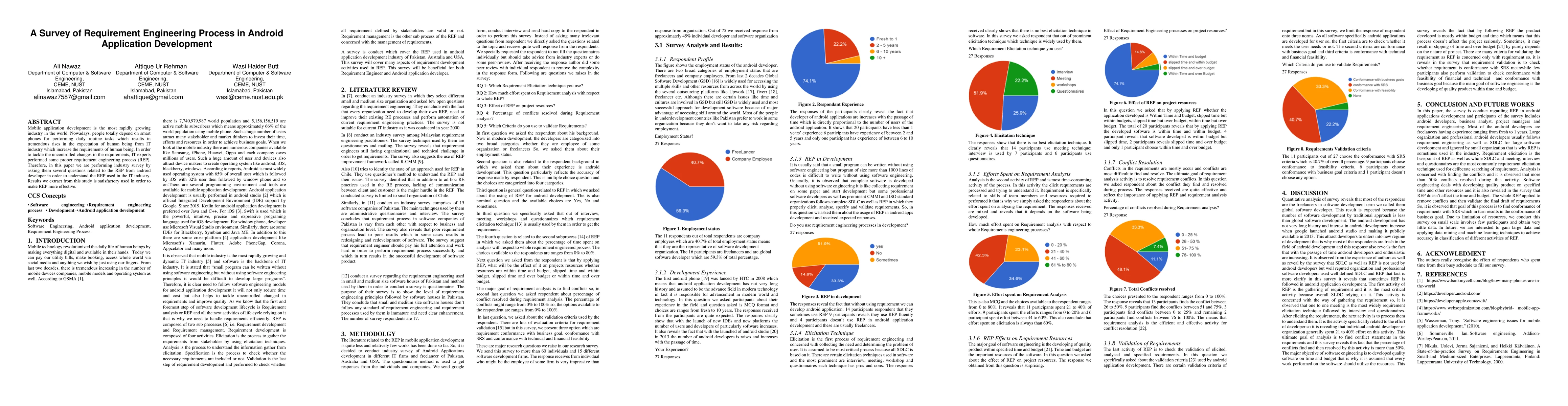 Mobile application development is the most rapidly growing industry in the world. Nowadays, people totally depend on smart phones for performing daily routine tasks which results in tremendous rises in the expectation of human being from IT industry which increase the requirements of human being. In order to tackle the uncontrolled changes in the requirements, IT experts performed some proper requirement engineering process (REP). Therefore, in this paper we are performing industry survey by asking them several questions related to the REP from android developer in order to understand the REP used in the IT industry. Results we extract from this study is satisfactory used in order to make REP more effective.
