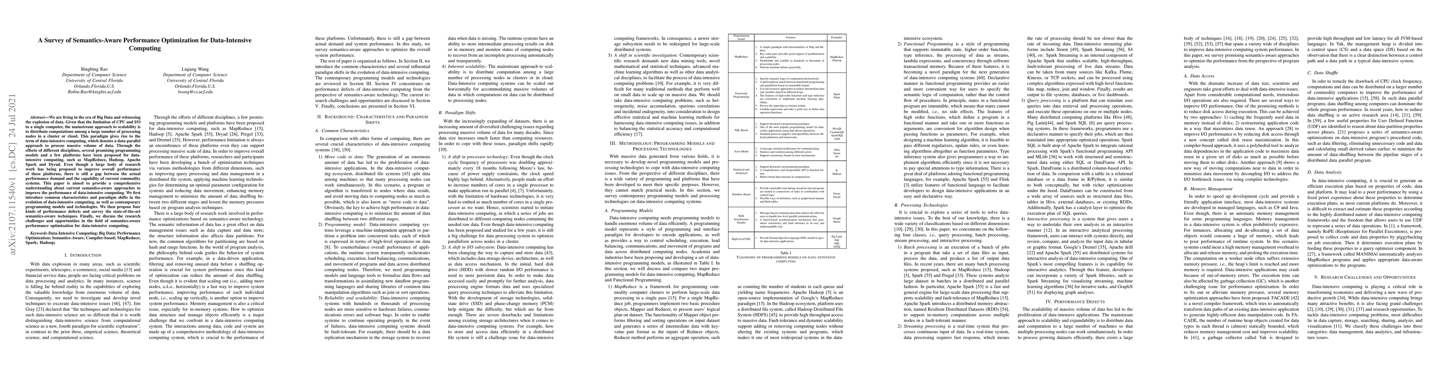 This paper surveys semantics-aware techniques to optimize performance in data-intensive computing, highlighting the evolution of programming models and identifying four types of performance defects. It reviews state-of-the-art solutions and discusses future research challenges and opportunities.