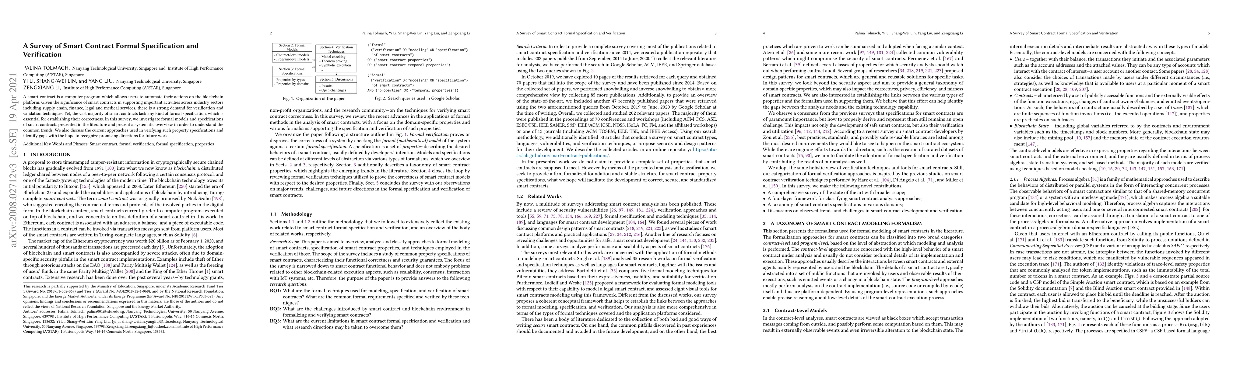 This paper surveys formal specification and verification techniques for smart contracts, highlighting the lack of formal specifications in existing contracts and providing a systematic overview of formal models and verification approaches to identify gaps and future research directions.