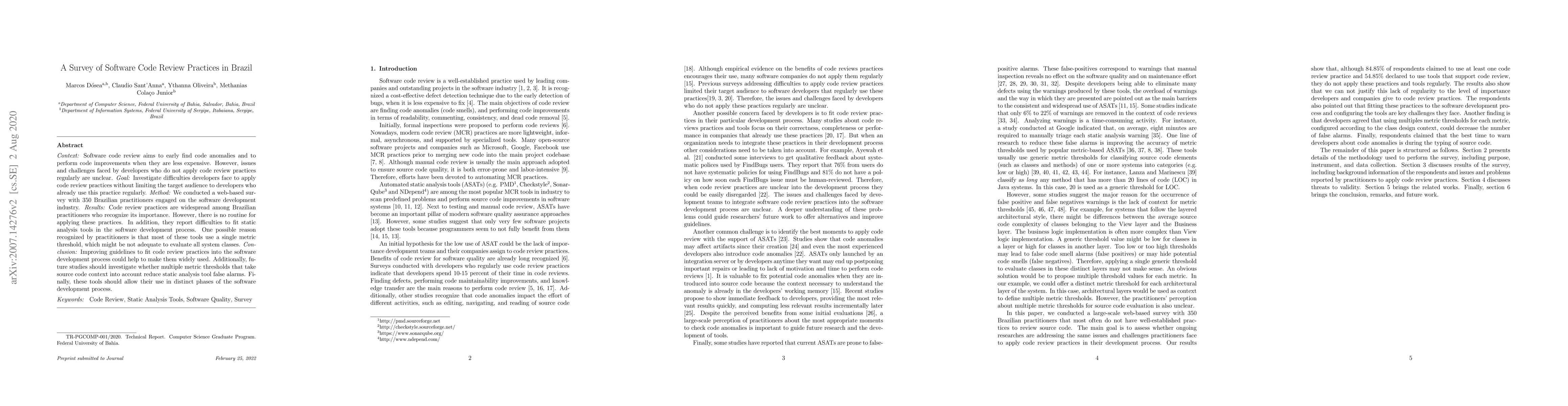 This survey investigates Brazilian software developers' challenges in applying code review practices, revealing widespread recognition of their importance but a lack of routine application. Developers face difficulties integrating static analysis tools, often due to inadequate single metric thresholds, suggesting a need for improved guidelines and multi-metric approaches.