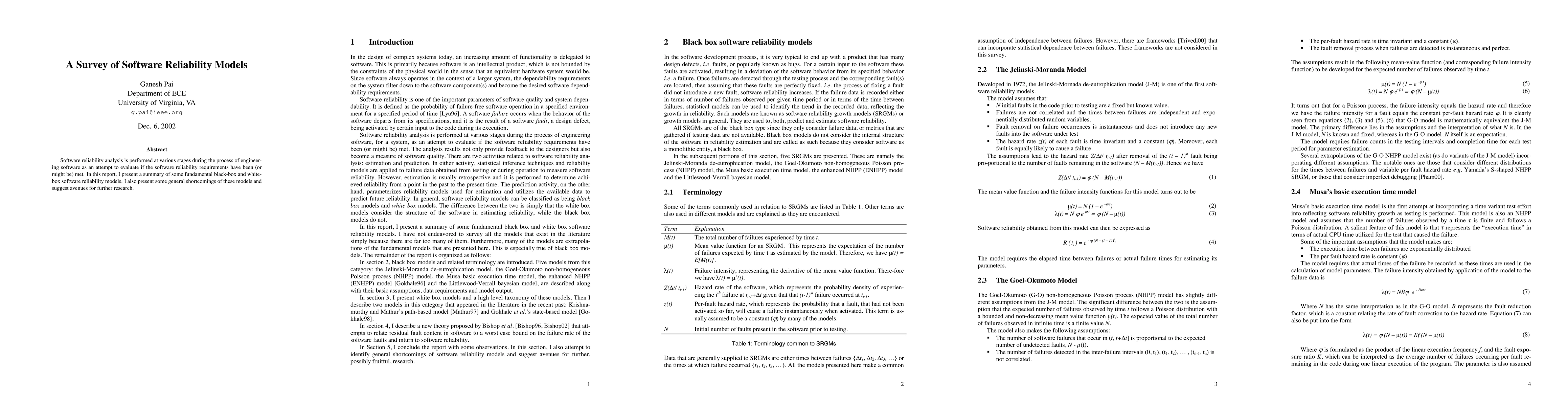 This paper surveys fundamental black-box and white-box software reliability models used to assess software reliability during engineering stages, highlighting their limitations and proposing directions for future research.