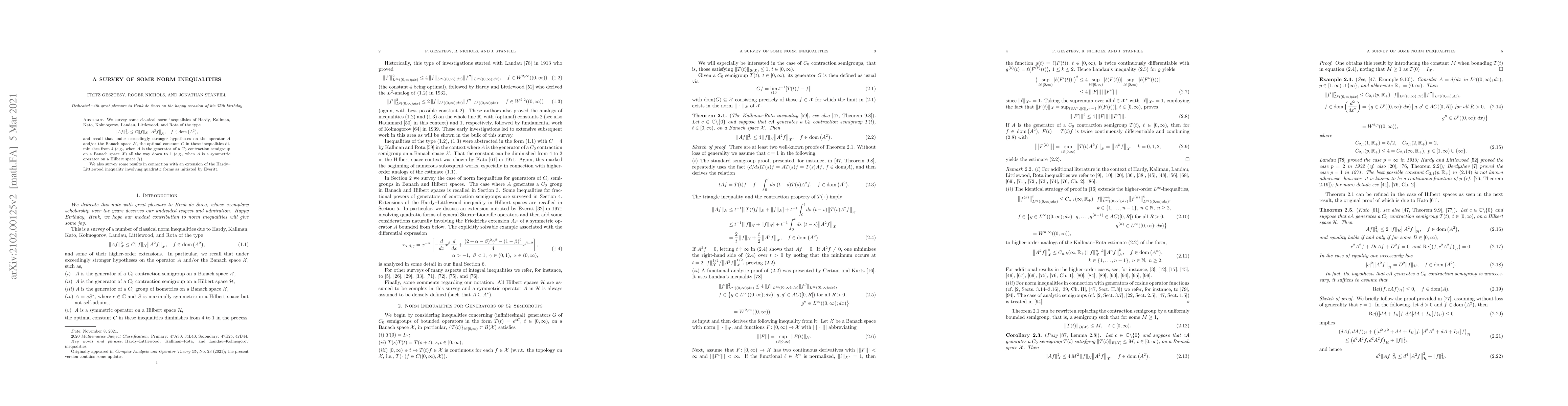We survey some classical norm inequalities of Hardy, Kallman, Kato, Kolmogorov, Landau, Littlewood, and Rota of the type \[ \|A f\|_{\mathcal{X}}^2 \leq C \|f\|_{\mathcal{X}} \big\|A^2 f\big\|_{\mathcal{X}}, \quad f \in dom\big(A^2\big), \] and recall that under exceedingly stronger hypotheses on the operator $A$ and/or the Banach space $\mathcal{X}$, the optimal constant $C$ in these inequalities diminishes from $4$ (e.g., when $A$ is the generator of a $C_0$ contraction semigroup on a Banach space $\mathcal{X}$) all the way down to $1$ (e.g., when $A$ is a symmetric operator on a Hilbert space $\mathcal{H}$). We also survey some results in connection with an extension of the Hardy-Littlewood inequality involving quadratic forms as initiated by Everitt.