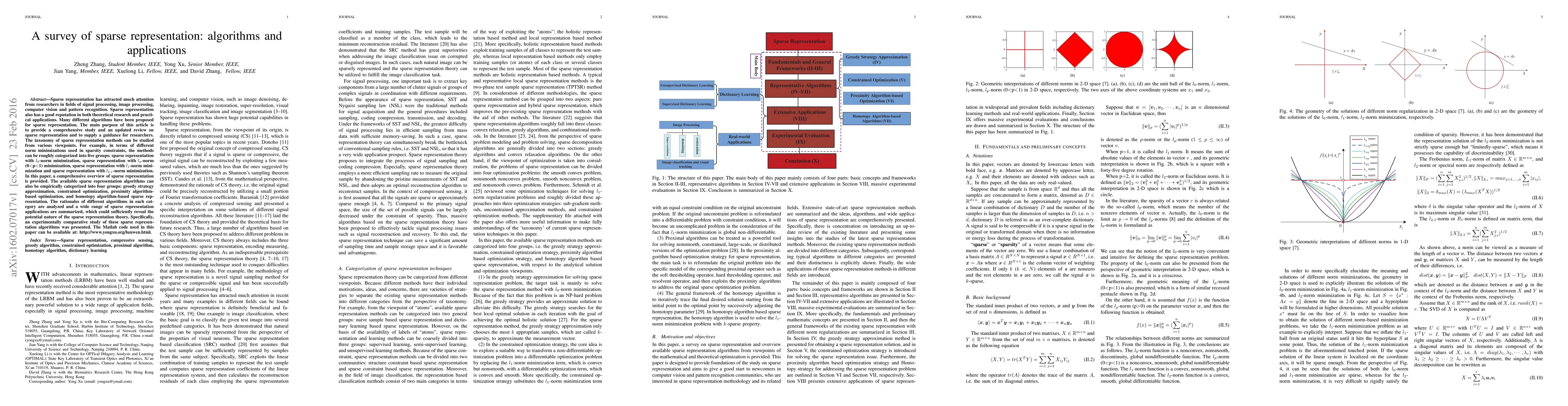 This paper provides a comprehensive review of sparse representation algorithms and their applications across signal and image processing, computer vision, and pattern recognition. It categorizes methods based on norm minimizations and algorithms, analyzes their rationales, and presents an experimental comparison, offering guidance for researchers.
