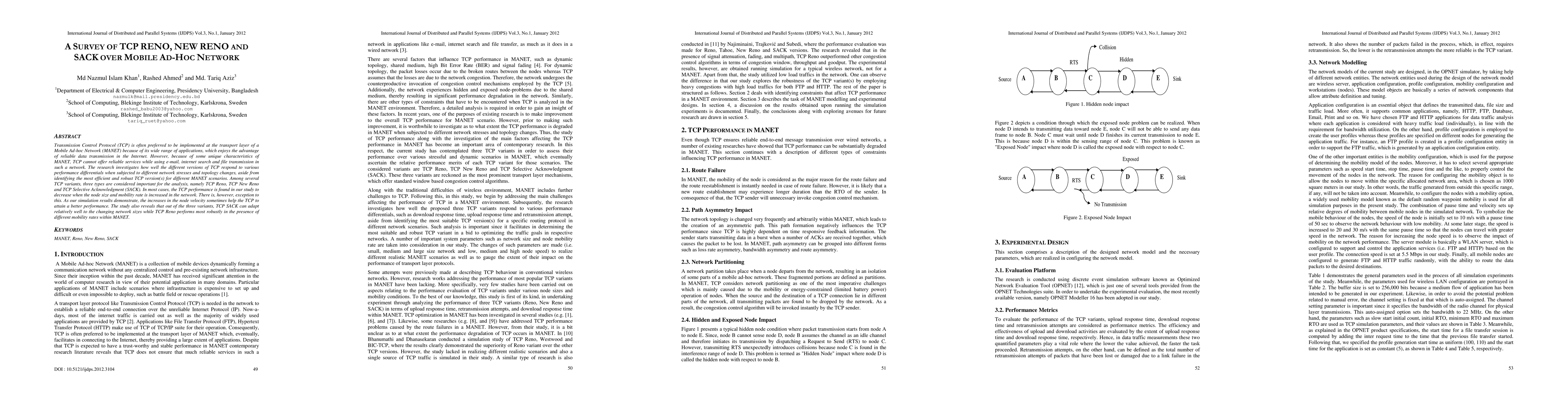 This paper surveys TCP Reno, New Reno, and SACK in Mobile Ad-Hoc Networks (MANET), finding that while TCP performance generally declines with increased node size and mobility, TCP SACK adapts better to varying network sizes, and TCP Reno is most robust against mobility changes. Simulation results indicate that higher node velocity can sometimes improve TCP performance, highlighting the need for efficient TCP variants in MANET environments.