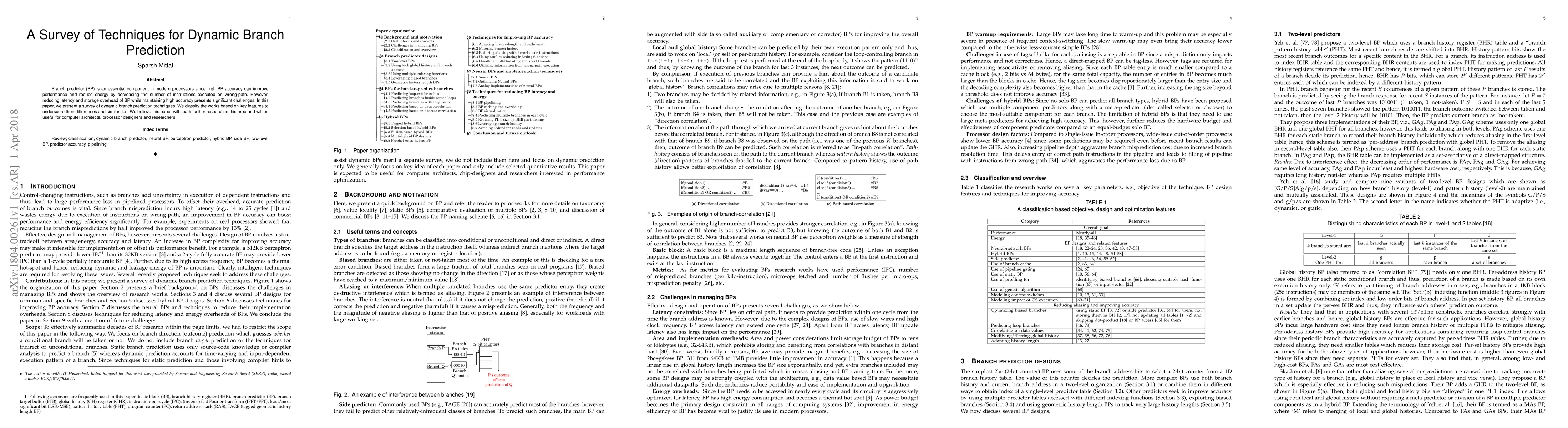 This paper surveys dynamic branch prediction techniques, classifying them based on key features to highlight their differences and similarities, aiming to inspire further research and assist computer architects and processor designers.