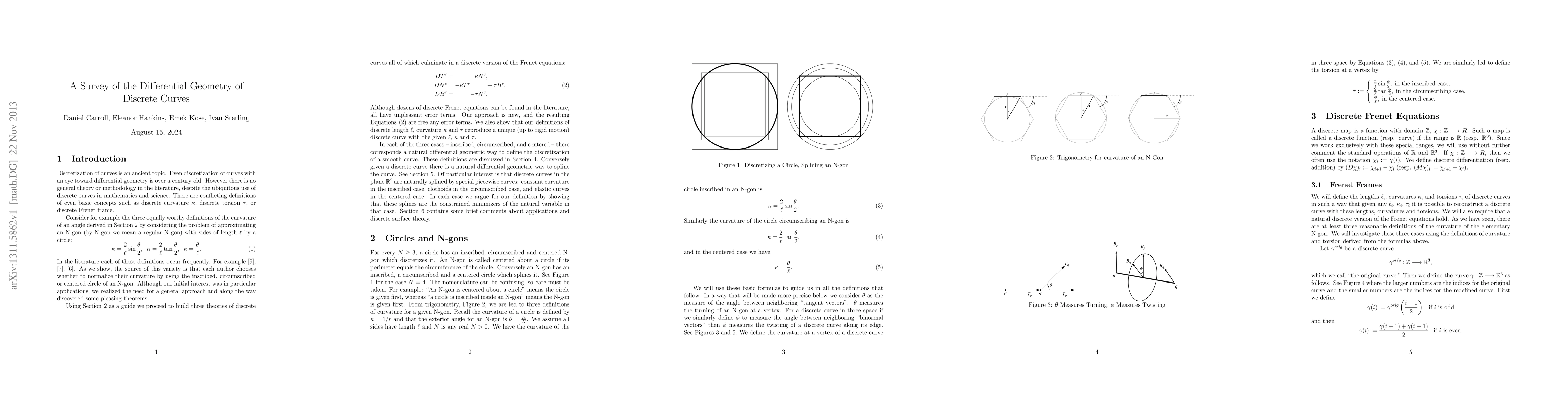 Discretization of curves is an ancient topic. Even discretization of curves with an eye toward differential geometry is over a century old. However there is no general theory or methodology in the literature, despite the ubiquitous use of discrete curves in mathematics and science. There are conflicting definitions of even basic concepts such as discrete curvature {\kappa}, discrete torsion {\tau}, or discrete Frenet frame.