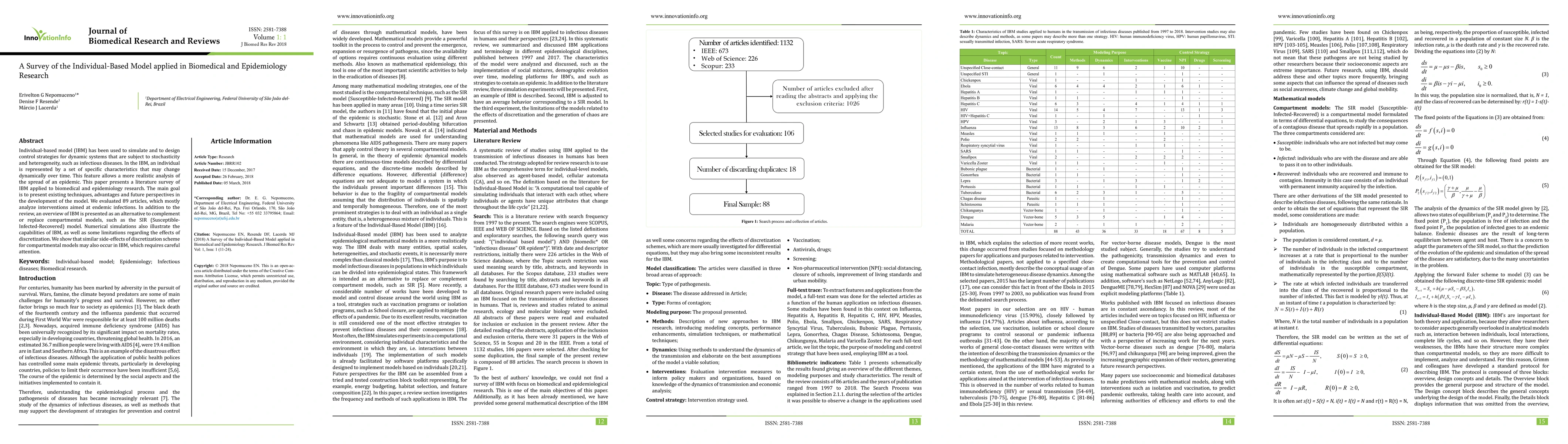 Individual-based model (IBM) has been used to simulate and to design control strategies for dynamic systems that are subject to stochasticity and heterogeneity, such as infectious diseases. In the IBM, an individual is represented by a set of specific characteristics that may change dynamically over time. This feature allows a more realistic analysis of the spread of an epidemic. This paper presents a literature survey of IBM applied to biomedical and epidemiology research. The main goal is to present existing techniques, advantages and future perspectives in the development of the model. We evaluated 89 articles, which mostly analyze interventions aimed at endemic infections. In addition to the review, an overview of IBM is presented as an alternative to complement or replace compartmental models, such as the SIR (Susceptible-Infected-Recovered) model. Numerical simulations also illustrate the capabilities of IBM, as well as some limitations regarding the effects of discretization. We show that similar side-effects of discretization scheme for compartmental models may also occur in IBM, which requires careful attention.