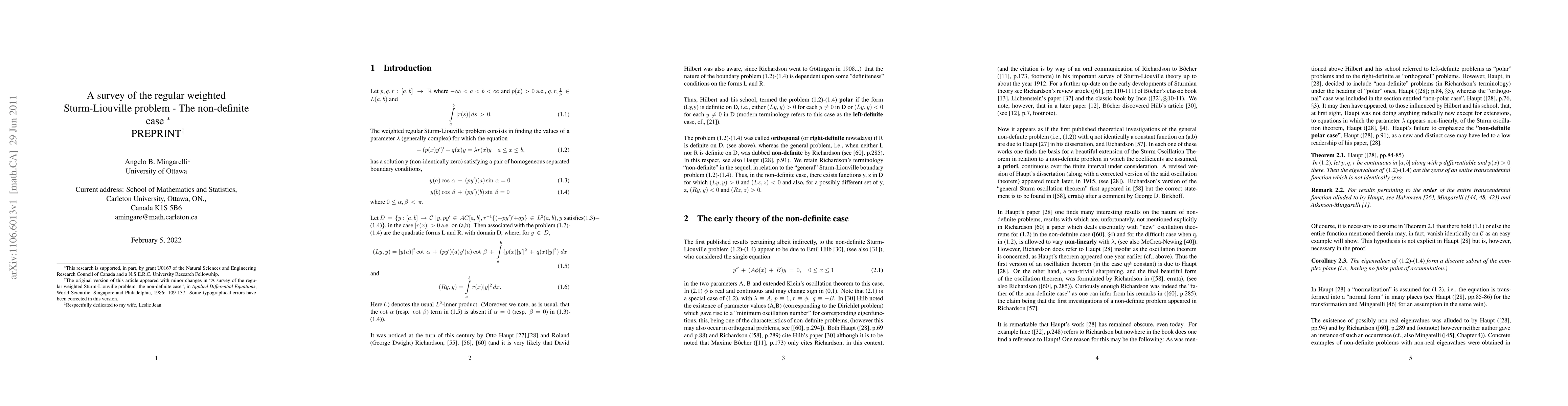 This is a survey of the non-definite Sturm-Liouville problem from its inception in the early 1900's until 1986.