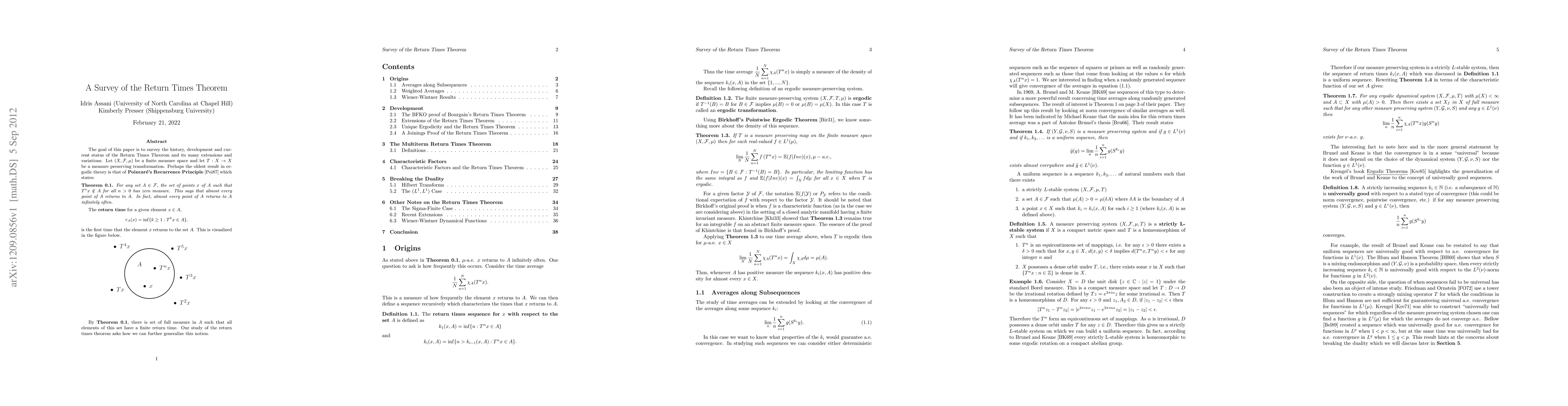 This paper surveys the history and development of the Return Times Theorem in ergodic theory, tracing its origins to Poincaré's Recurrence Principle and exploring its extensions and variations, including multiterm versions, characteristic factors, and breaking H\"olderian duality. It concludes with recent advancements and open questions.