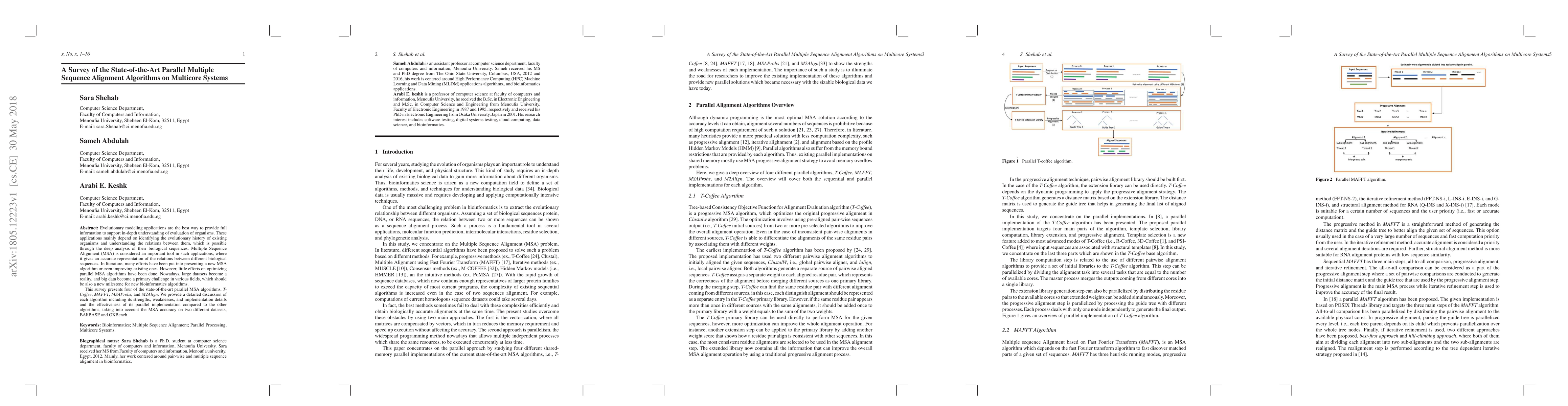 Evolutionary modeling applications are the best way to provide full information to support in-depth understanding of evaluation of organisms. These applications mainly depend on identifying the evolutionary history of existing organisms and understanding the relations between them, which is possible through the deep analysis of their biological sequences. Multiple Sequence Alignment (MSA) is considered an important tool in such applications, where it gives an accurate representation of the relations between different biological sequences. In literature, many efforts have been put into presenting a new MSA algorithm or even improving existing ones. However, little efforts on optimizing parallel MSA algorithms have been done. Nowadays, large datasets become a reality, and big data become a primary challenge in various fields, which should be also a new milestone for new bioinformatics algorithms. This survey presents four of the state-of-the-art parallel MSA algorithms, TCoffee, MAFFT, MSAProbs, and M2Align. We provide a detailed discussion of each algorithm including its strengths, weaknesses, and implementation details and the effectiveness of its parallel implementation compared to the other algorithms, taking into account the MSA accuracy on two different datasets, BAliBASE and OXBench.