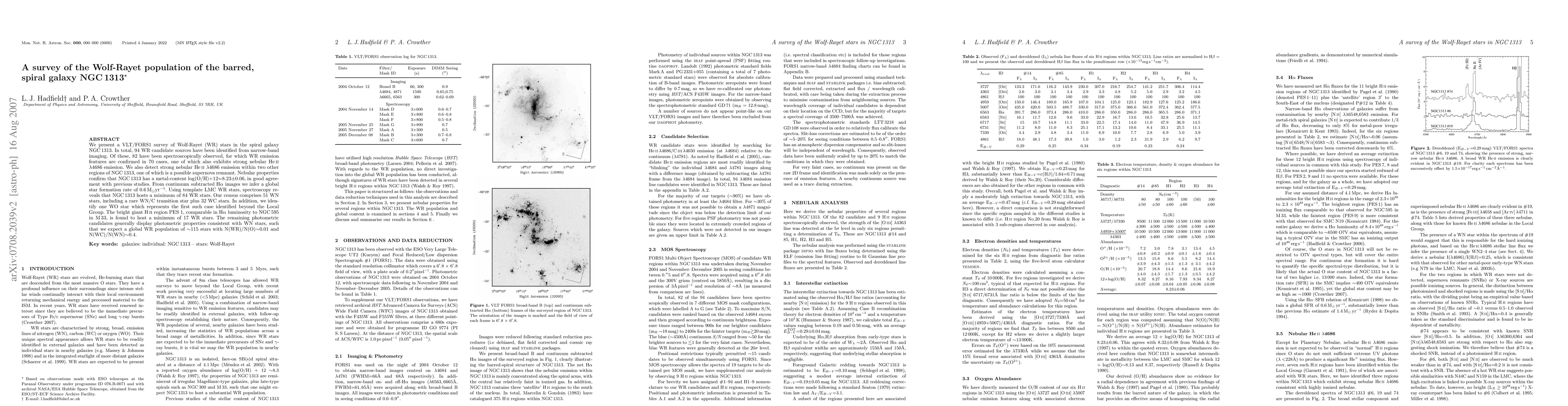 We present a VLT/FORS1 survey of Wolf-Rayet (WR) stars in the spiral galaxy NGC 1313. In total, 94 WR candidate sources have been identified from narrow-band imaging. Of these, 82 have been spectroscopically observed, for which WR emission features are confirmed in 70 cases, one of which also exhibits strong nebular HeII 4686 emission. We also detect strong nebular HeII 4686 emission within two other regions of NGC 1313, one of which is a possible supernova remnant. Nebular properties confirm that NGC 1313 has a metal-content log(O/H)+12=8.23+/-0.06, in good agreement with previous studies. From continuum subtracted Halpha images we infer a global star formation rate of 0.6 Msun/yr. Using template LMC WR stars, spectroscopy reveals that NGC 1313 hosts a minimum of 84 WR stars. Our census comprises 51 WN stars, including a rare WN/C transition star plus 32 WC stars. In addition, we identify one WO star which represents the first such case identified beyond the Local Group. The bright giant HII region PES 1, comparable in Halpha luminosity to NGC 595 in M 33, is found to host a minimum of 17 WR stars. The remaining photometric candidates generally display photometric properties consistent with WN stars, such that we expect a global WR population of ~115 stars with N(WR)/N(O)~0.01 and N(WC)/N(WN)~0.4.