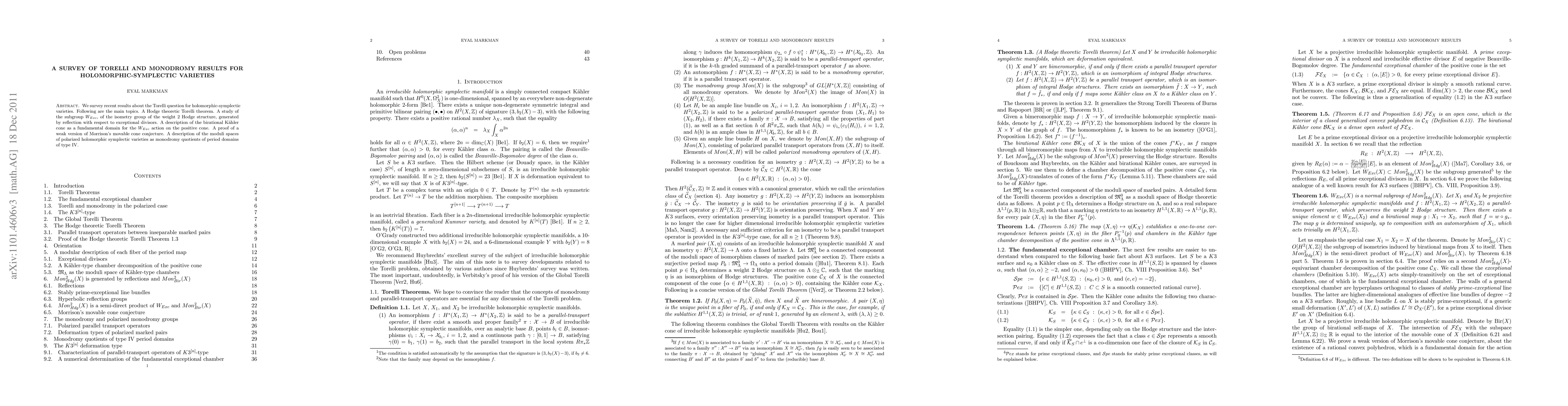 This paper surveys recent advancements on the Torelli theorem for holomorphic-symplectic varieties, including a Hodge-theoretic Torelli theorem and a study of the subgroup W within the isometry group. It also explores the birational Kahler cone, addresses Morrison's movable cone conjecture, and describes the moduli spaces of polarized holomorphic symplectic varieties as monodromy quotients.