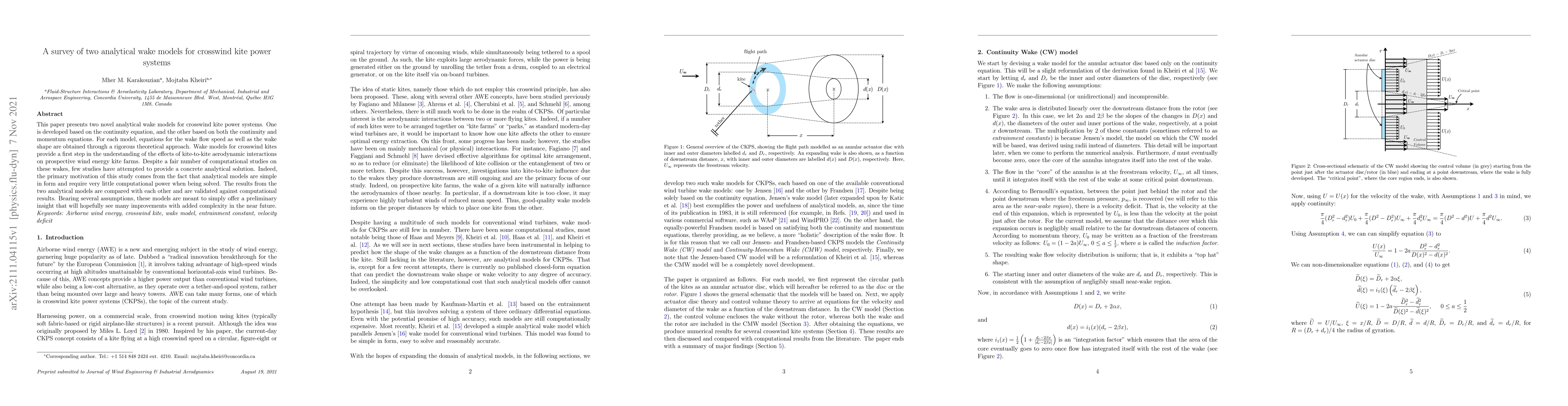 This paper introduces two analytical wake models for crosswind kite power systems, comparing a continuity-based model with a combined continuity and momentum model, and validating their results against computational data to provide preliminary insights into kite-to-kite aerodynamic interactions.