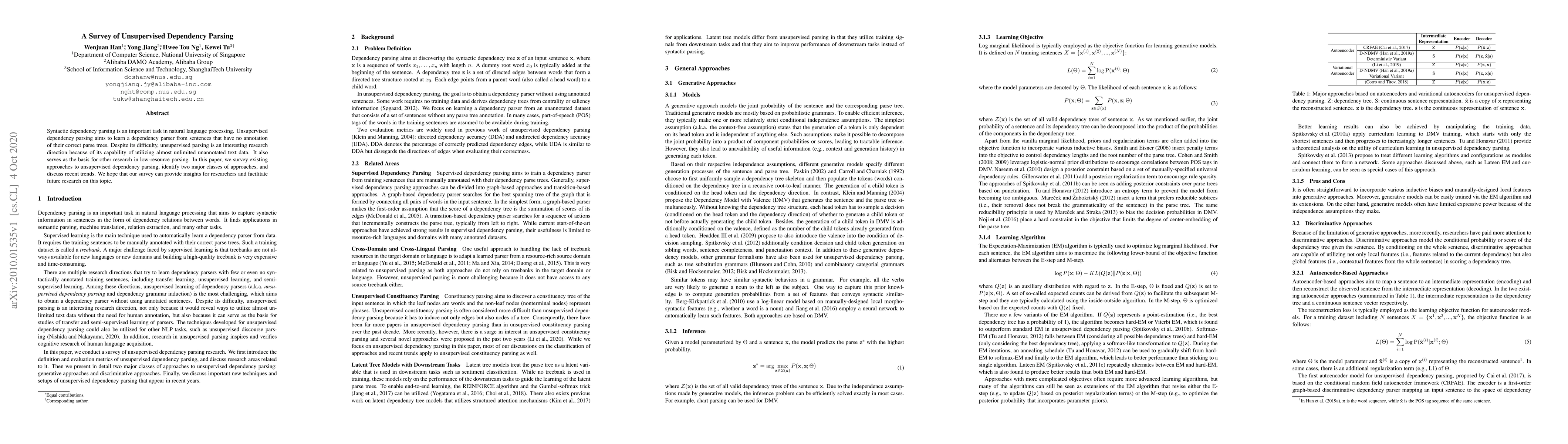 This paper surveys unsupervised dependency parsing methods, categorizing them into two major classes, and discusses recent trends, aiming to offer insights and facilitate future research in utilizing unannotated text data for syntactic analysis.