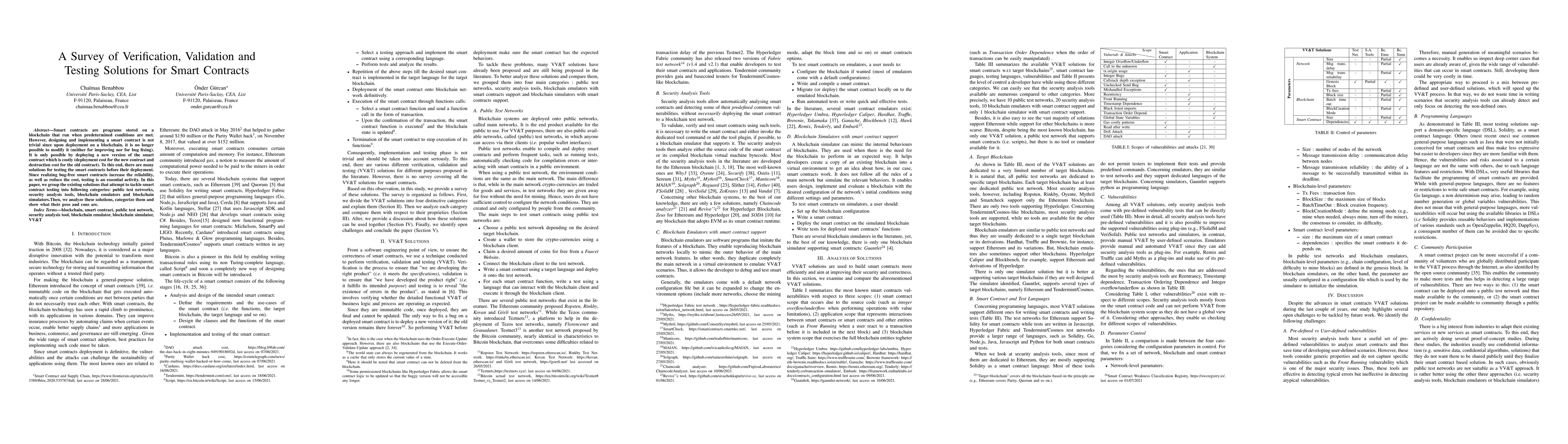 Smart contracts are programs stored on a blockchain that run when predetermined conditions are met. However, designing and implementing a smart contract is not trivial since upon deployment on a blockchain, it is no longer possible to modify it (neither for improving nor for bug fixing). It is only possible by deploying a new version of the smart contract which is costly (deployment cost for the new contract and destruction cost for the old contract). To this end, there are many solutions for testing the smart contracts before their deployment. Since realizing bug-free smart contracts increase the reliability, as well as reduce the cost, testing is an essential activity. In this paper, we group the existing solutions that attempt to tackle smart contract testing into following categories: public test networks, security analysis tools, blockchain emulators and blockchain simulators. Then, we analyze these solutions, categorize them and show what their pros and cons are.