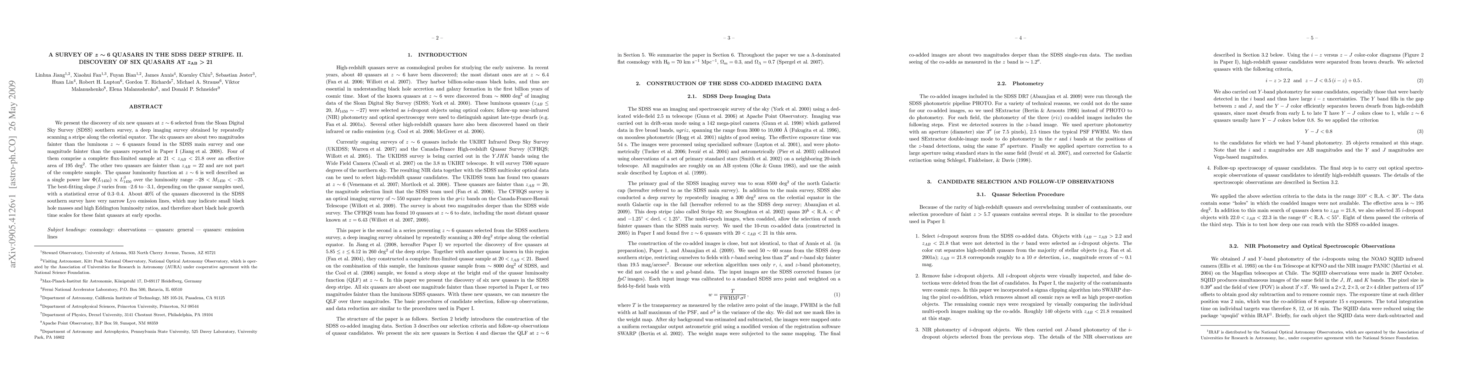 repeatedly scanning a stripe along the celestial equator. The six quasars are
