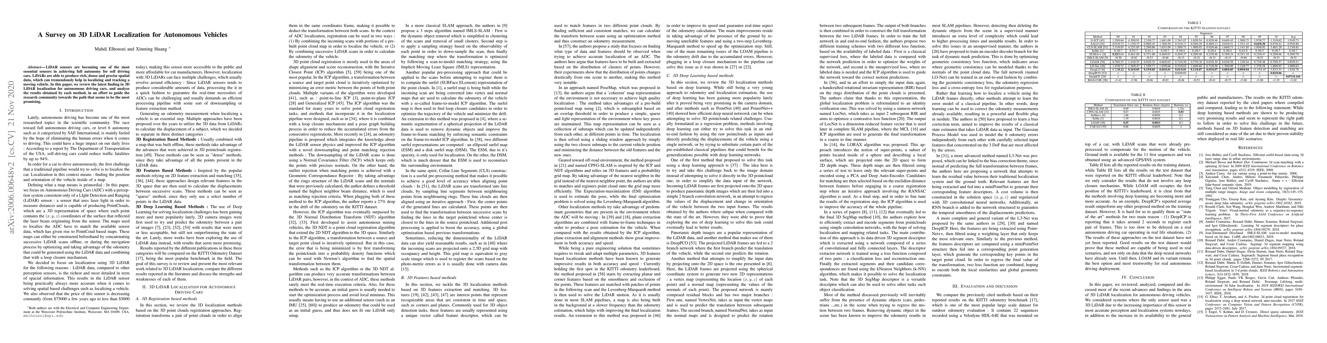LiDAR sensors are becoming one of the most essential sensors in achieving full autonomy for self driving cars. LiDARs are able to produce rich, dense and precise spatial data, which can tremendously help in localizing and tracking a moving vehicle. In this paper, we review the latest finding in 3D LiDAR localization for autonomous driving cars, and analyse the results obtained by each method, in an effort to guide the research community towards the path that seems to be the most promising.