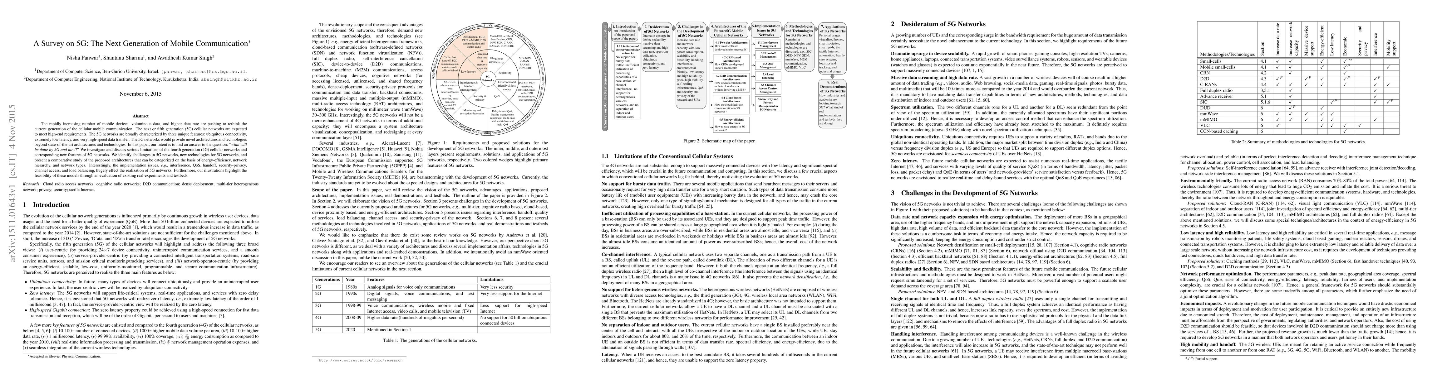 This paper surveys the advancements and challenges of 5G cellular networks, highlighting 5G's unique features of ubiquitous connectivity, low latency, and high-speed data transfer. It discusses limitations of 4G, new 5G technologies, and comparative architectures based on energy-efficiency and network types.