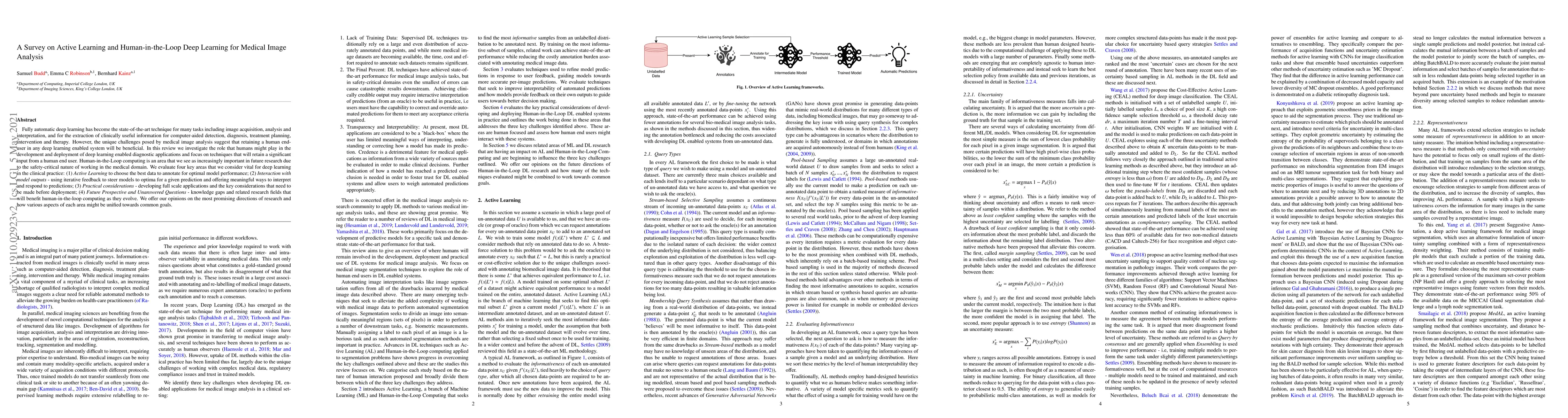 Fully automatic deep learning has become the state-of-the-art technique for many tasks including image acquisition, analysis and interpretation, and for the extraction of clinically useful information for computer-aided detection, diagnosis, treatment planning, intervention and therapy. However, the unique challenges posed by medical image analysis suggest that retaining a human end user in any deep learning enabled system will be beneficial. In this review we investigate the role that humans might play in the development and deployment of deep learning enabled diagnostic applications and focus on techniques that will retain a significant input from a human end user. Human-in-the-Loop computing is an area that we see as increasingly important in future research due to the safety-critical nature of working in the medical domain. We evaluate four key areas that we consider vital for deep learning in the clinical practice: (1) Active Learning to choose the best data to annotate for optimal model performance; (2) Interaction with model outputs - using iterative feedback to steer models to optima for a given prediction and offering meaningful ways to interpret and respond to predictions; (3) Practical considerations - developing full scale applications and the key considerations that need to be made before deployment; (4) Future Prospective and Unanswered Questions - knowledge gaps and related research fields that will benefit human-in-the-loop computing as they evolve. We offer our opinions on the most promising directions of research and how various aspects of each area might be unified towards common goals.