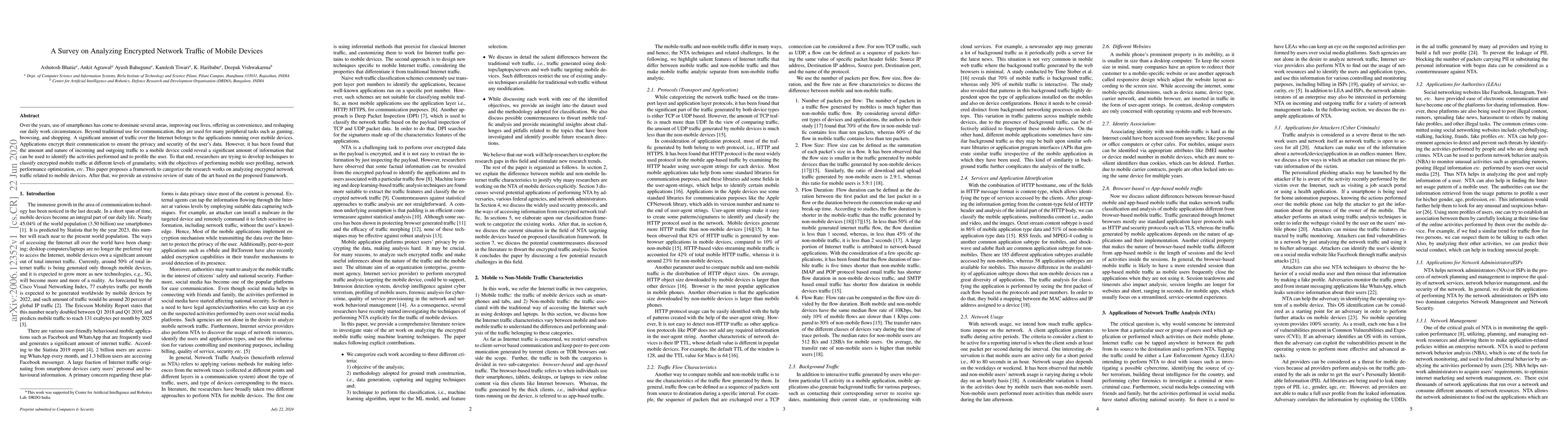 This paper surveys techniques for analyzing encrypted network traffic from mobile devices to infer user activities and optimize network performance, categorizing and reviewing existing research methods.