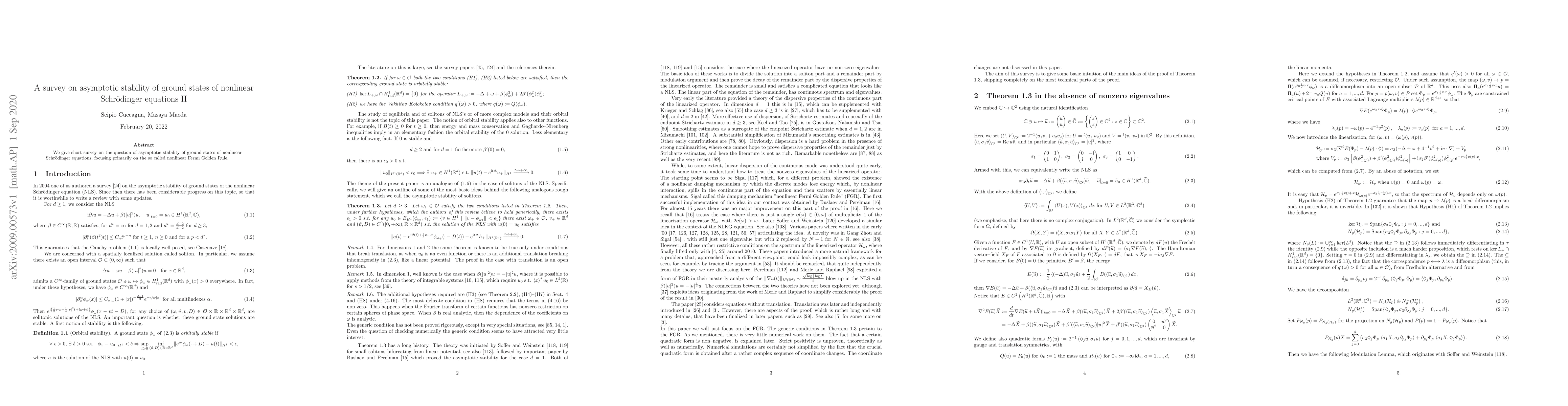 Summary: This paper provides a concise survey on the asymptotic stability of ground states in nonlinear Schrödinger equations, emphasizing the nonlinear Fermi Golden Rule as a key concept. The focus is on understanding the stability mechanisms in these complex systems.