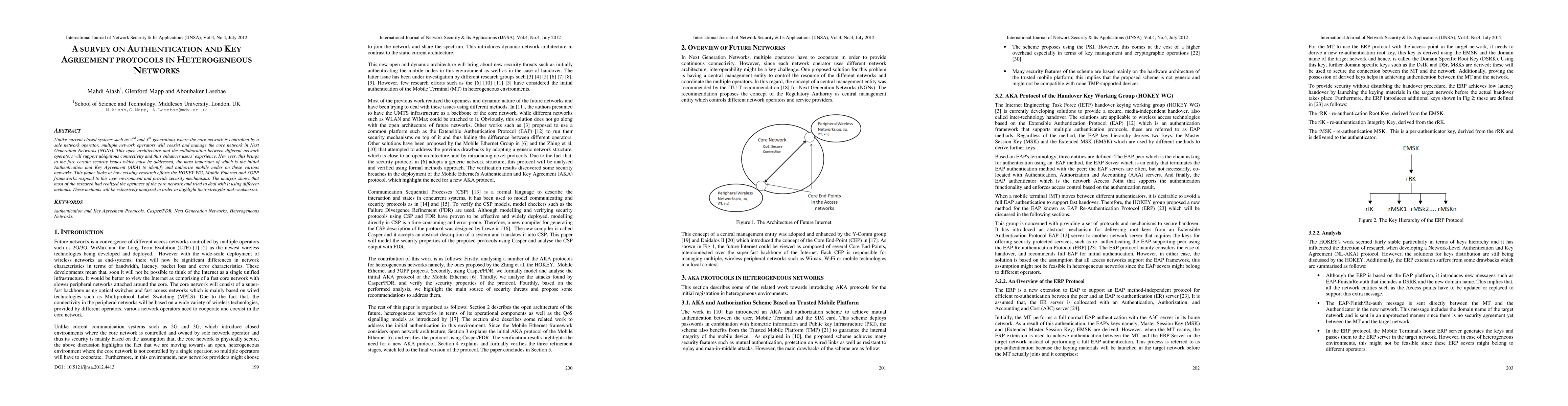 This paper analyzes existing authentication and key agreement protocols in heterogeneous networks to address security concerns in Next Generation Networks. It highlights the strengths and weaknesses of various methods used to tackle these issues.