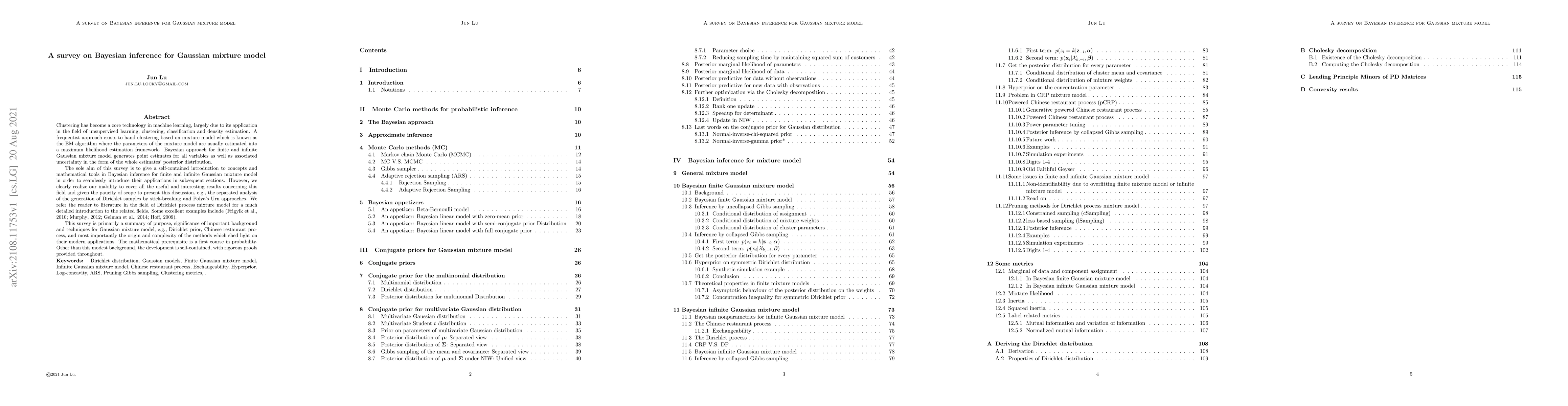 This survey provides a comprehensive introduction to Bayesian inference for Gaussian mixture models, focusing on finite and infinite mixtures, and includes key techniques like Dirichlet priors and the Chinese restaurant process. It aims to elucidate the mathematical foundations and modern applications, assuming basic knowledge of probability.