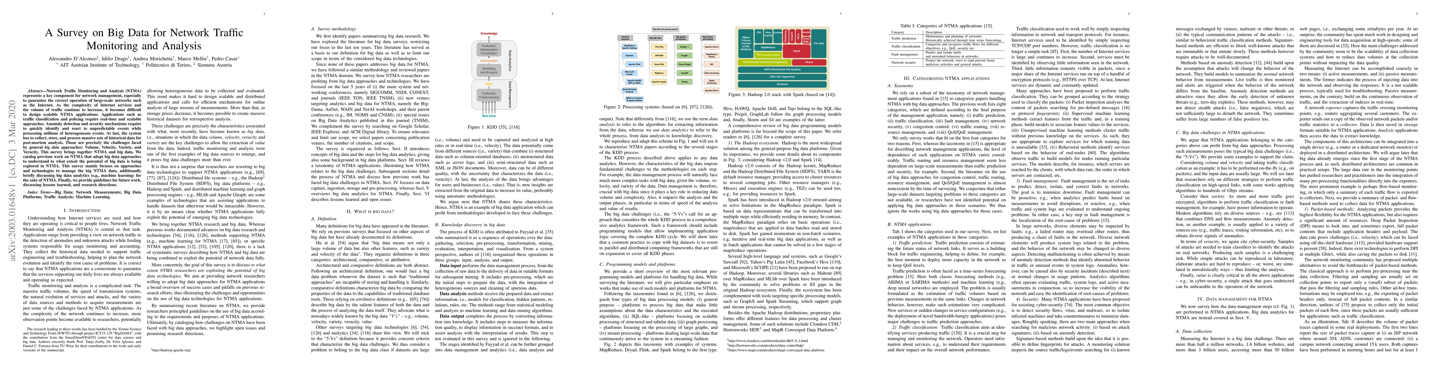 This survey examines the integration of big data approaches for Network Traffic Monitoring and Analysis (NTMA), focusing on scalable solutions for managing the challenges of volume, velocity, variety, and veracity of network data. It catalogs existing methods and technologies for NTMA, briefly touches on big data analytics, and provides insights and directions for future research.