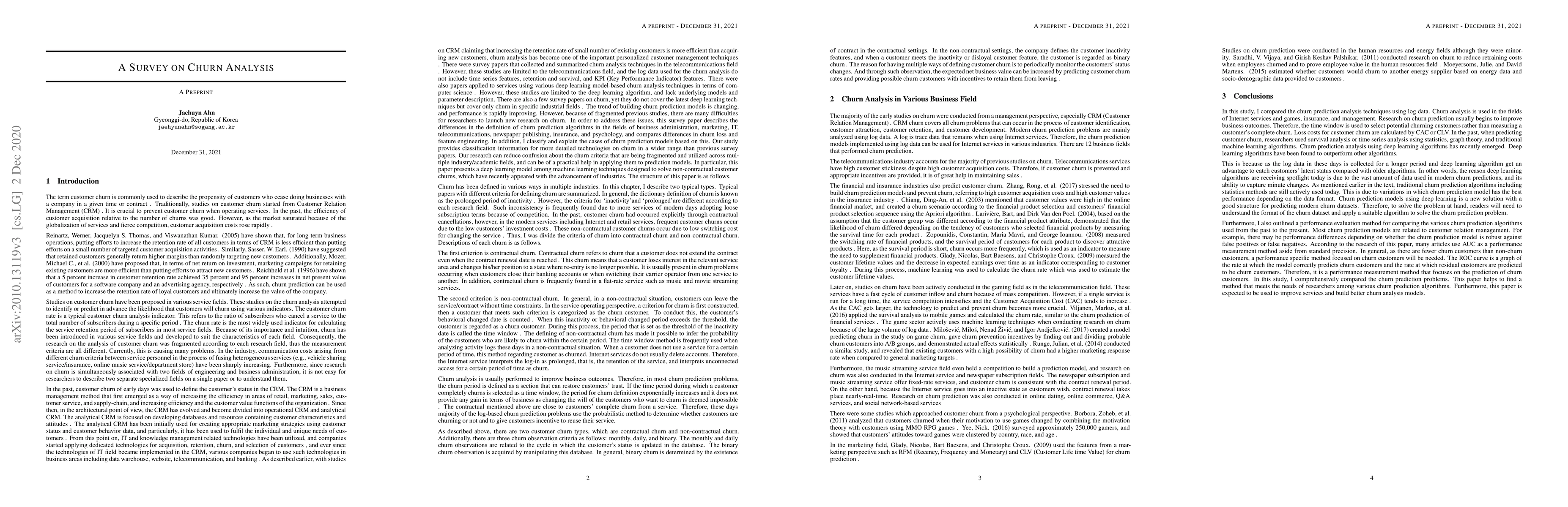 This survey paper compiles and contrasts churn definitions from various fields, classifying them into churn loss, feature engineering, and prediction models. It aims to guide researchers in selecting suitable churn definitions and models for their specific service fields.