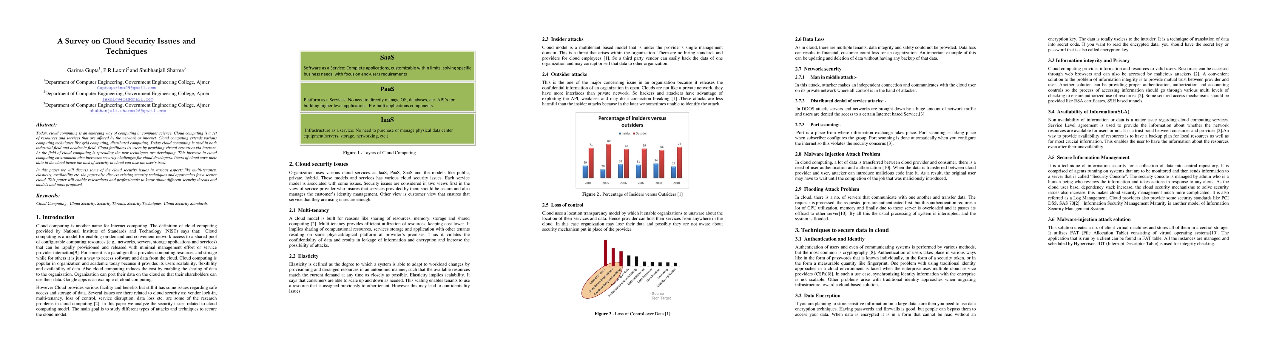 This paper surveys cloud security issues, including challenges in multi-tenancy, elasticity, and availability, and discusses existing security techniques and approaches to secure cloud environments. It aims to inform researchers and professionals on various security threats and proposed models and tools.