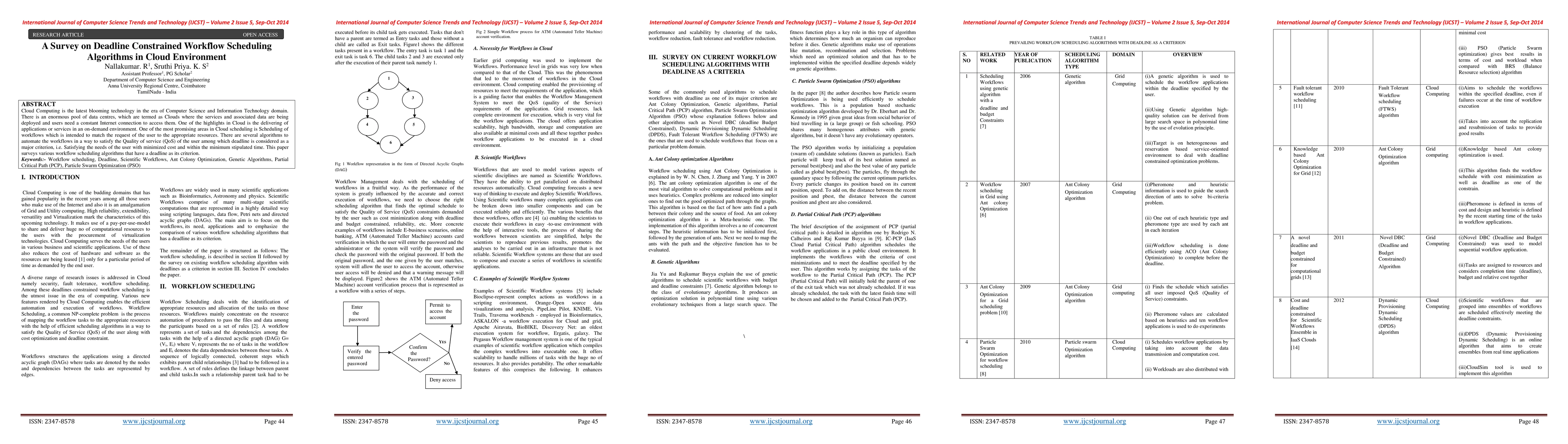 This paper surveys various deadline-constrained workflow scheduling algorithms in cloud environments, focusing on methods that optimize resource allocation to meet user-defined time constraints while minimizing cost and ensuring service quality.
