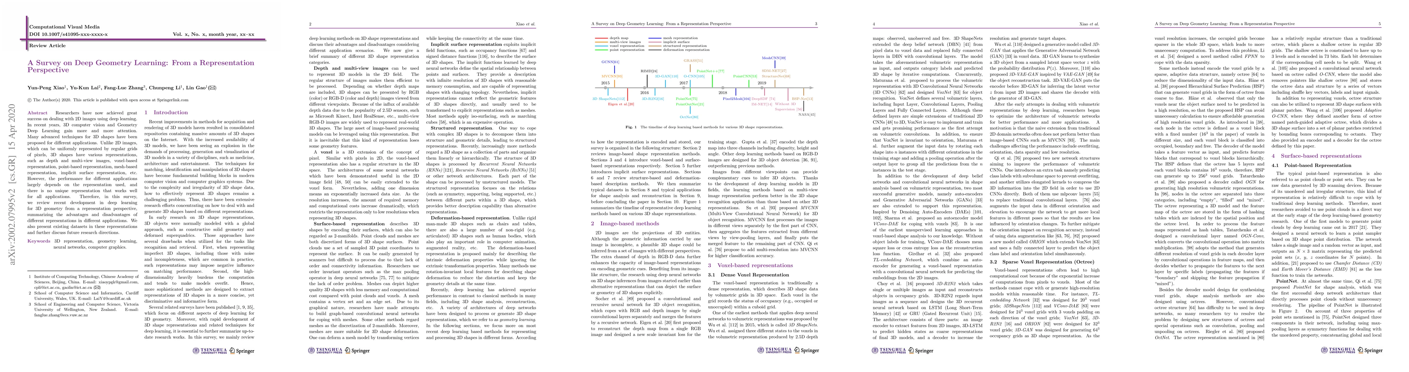This paper surveys recent advancements in deep learning for 3D geometry, focusing on various representation methods like voxel-based, point-based, and mesh-based. It highlights the strengths and limitations of these representations across different applications and discusses existing datasets and future research directions.
