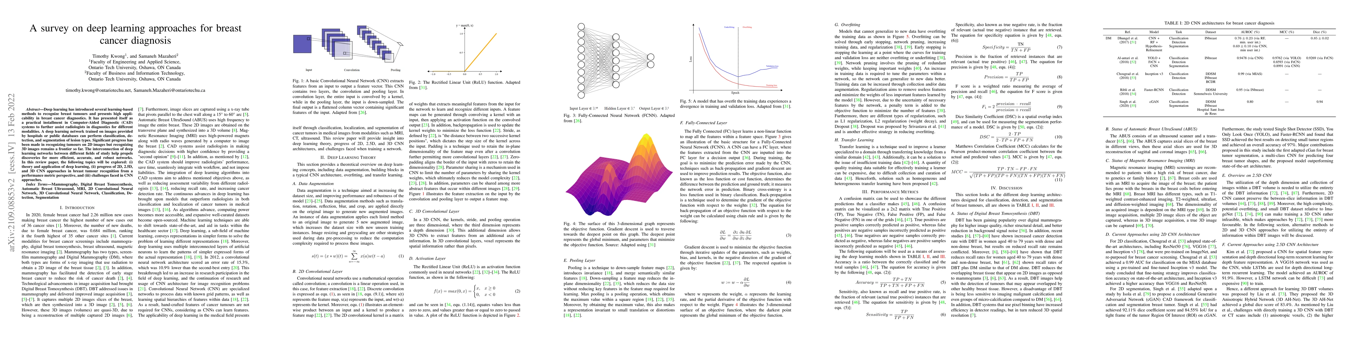 This review paper explores deep learning approaches for breast cancer diagnosis, highlighting progress in 2D, 3D image recognition and challenges faced in CNN-based methods.