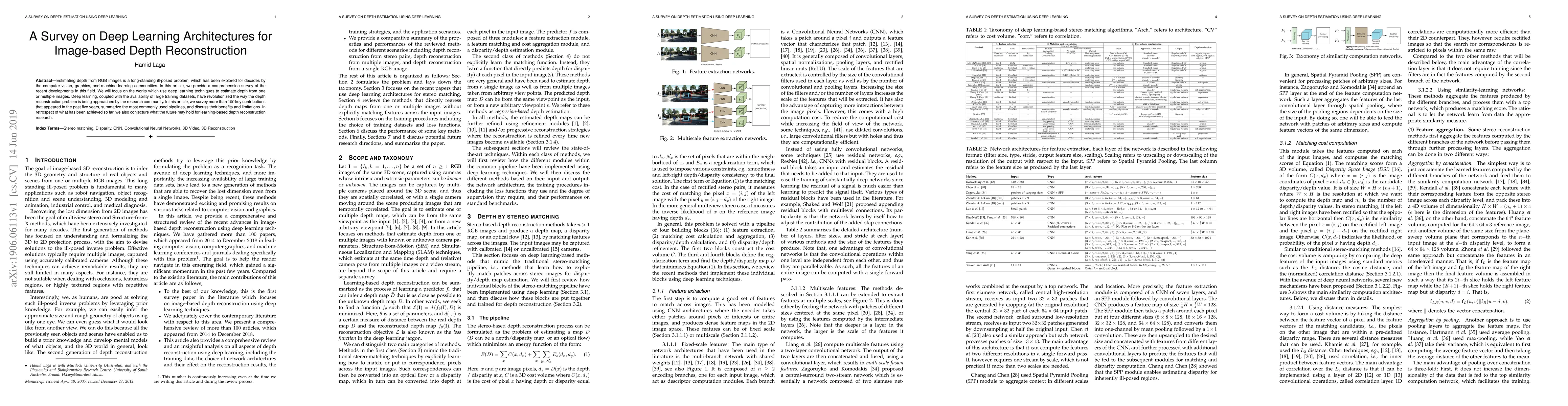 Estimating depth from RGB images is a long-standing ill-posed problem, which has been explored for decades by the computer vision, graphics, and machine learning communities. In this article, we provide a comprehensive survey of the recent developments in this field. We will focus on the works which use deep learning techniques to estimate depth from one or multiple images. Deep learning, coupled with the availability of large training datasets, have revolutionized the way the depth reconstruction problem is being approached by the research community. In this article, we survey more than 100 key contributions that appeared in the past five years, summarize the most commonly used pipelines, and discuss their benefits and limitations. In retrospect of what has been achieved so far, we also conjecture what the future may hold for learning-based depth reconstruction research.
