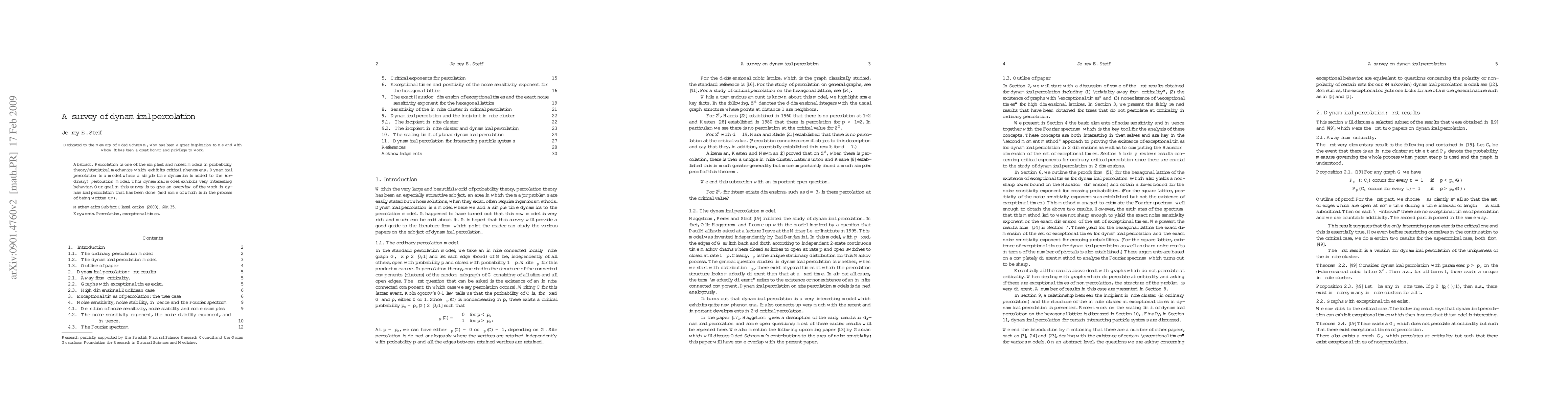 This paper provides a comprehensive overview of dynamical percolation, a model that introduces time dynamics to traditional percolation theory, highlighting its unique critical phenomena and summarizing existing research in this evolving field.