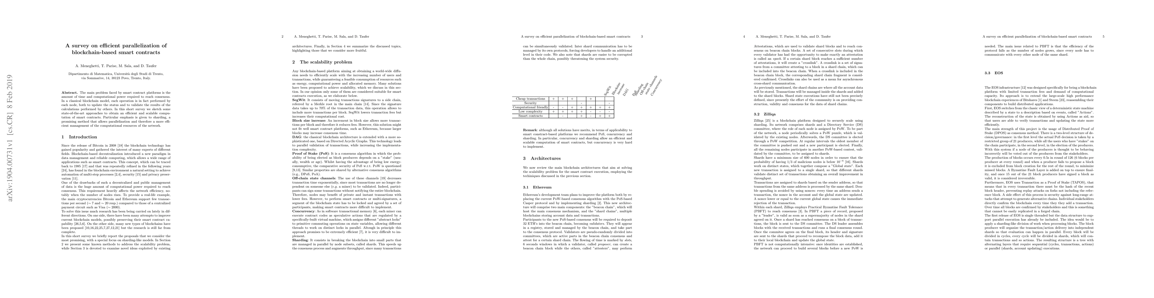 This survey explores efficient parallelization methods for blockchain-based smart contracts, with a focus on sharding to manage computational resources effectively.