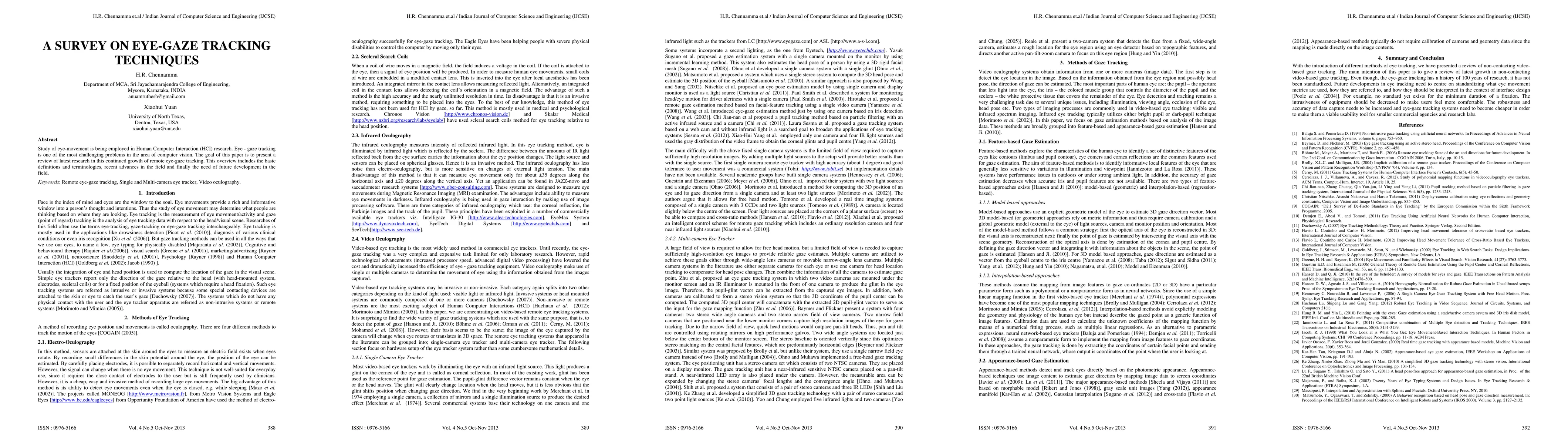 This paper reviews the latest advancements in remote eye-gaze tracking techniques within Human-Computer Interaction, highlighting recent developments and identifying future research needs in this challenging computer vision area.