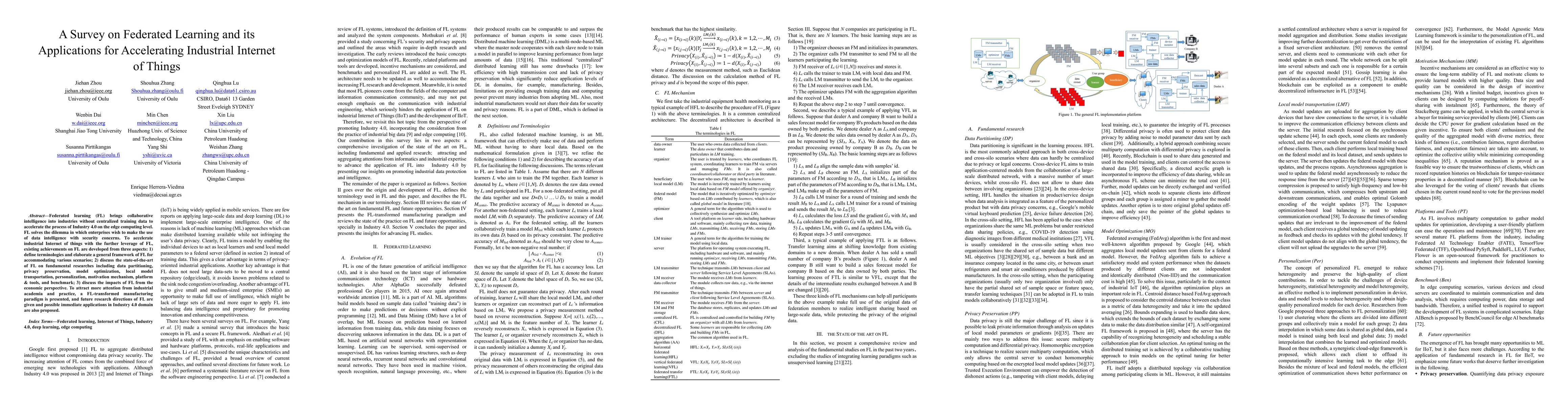 This paper surveys federated learning (FL) applications in accelerating the Industrial Internet of Things (IIoT), defining FL frameworks and discussing its state-of-the-art in data partitioning, privacy, and model optimization. It also explores FL's economic impacts and proposes a FL-transformed manufacturing paradigm with future research directions and immediate applications in Industry 4.0.
