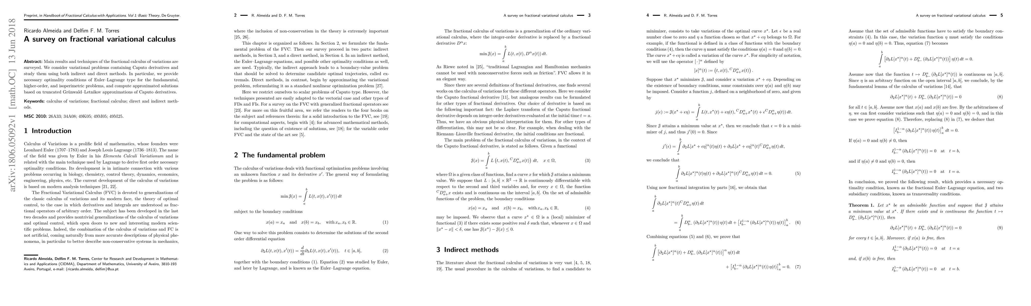 This paper surveys techniques and results in fractional variational calculus, focusing on problems involving Caputo derivatives. It provides necessary optimality conditions and approximate solutions using truncated Grünwald-Letnikov approximations.